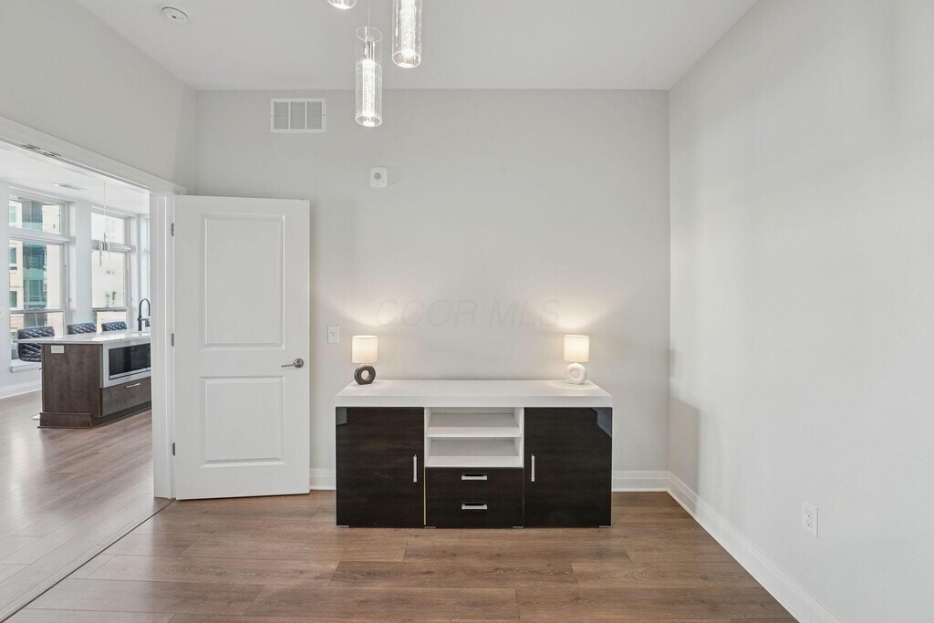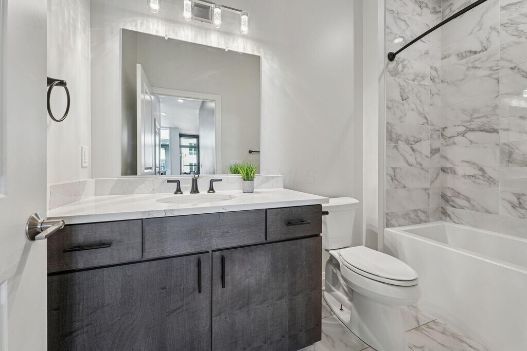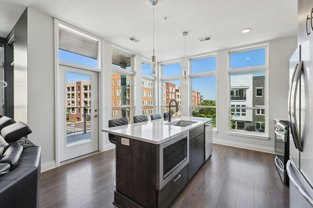 Enjoy modern condo living in Bridge Park,where restaurants,shops,and nightlife are just outside your door. Designed with stylish finishes and open,light-filled spaces,this residence blends sophistication comfort and convenience in Dublin's most walkable community. The kitchen features a large quartz island Bosch stainless steel appliances,and sleek modern cabinetry. A full pantry adds ample storage and functionality. Each bedroom includes a walk-in closet,offering generous storage throughout the home. Both bathrooms are finished with modern tile,quartz countertops,and matte black fixtures for a clean,contemporary look. The functional laundry comes complete with washer & dryer & additional storage. Enjoy the fully private courtyard with inground pool,lounge area and chef style grilling station. Living at Bridge Park means easy access to award-winning dining,boutique shopping,rooftop patios,and year-round events. Step outside to enjoy the pedestrian bridge,riverfront paths,and vibrant neighborhood scene,all just minutes from your door. Convenient parking and secure building entry provide ease and peace of mind.