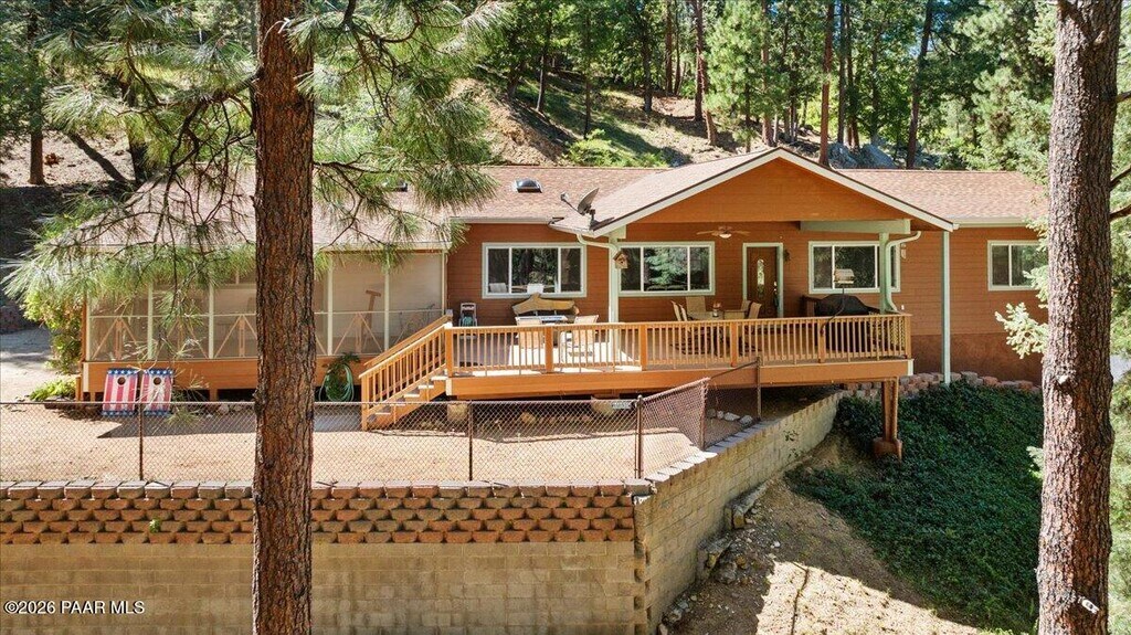 Incredible home in the tall pines of Walker AZ. This property comes fully furnished and can be rented from 3 to 12 months at a. Water and power included in the rent. Split 3-bedroom plan with a spacious kitchen and great room. Enjoy a game of pool while you watch the wildlife through the massive living room windows. Screen porch to enjoy all the seasons. Fireplace in living room,carport by the front door and a large 2 car garage below. This property is furnished down to the towels,knifes and toaster! All adult occupants must apply. Dogs accepted on a case-by-case basis with owner approval. Pet rent would apply. Property is professionally managed.