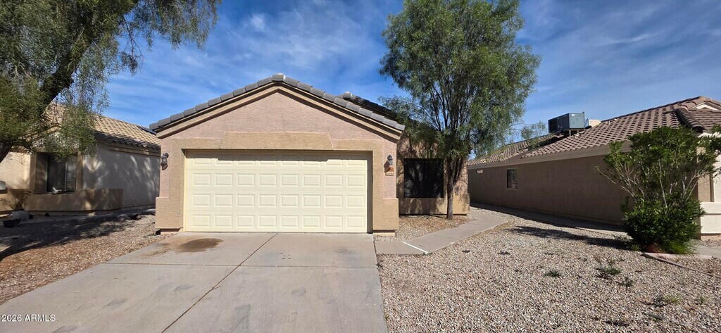 Welcome to a charming single-family home at located in the desirable Oasis at Magic Ranch community in Florence,AZ with three bedrooms and two bathrooms in a split floor plan. The home includes a master suite with a full bath and walk-in closet The exterior has low-maintenance rock landscaping and backs onto a community greenbelt,while the neighborhood provides a playground and walking paths,with convenient access to Hunt Highway.