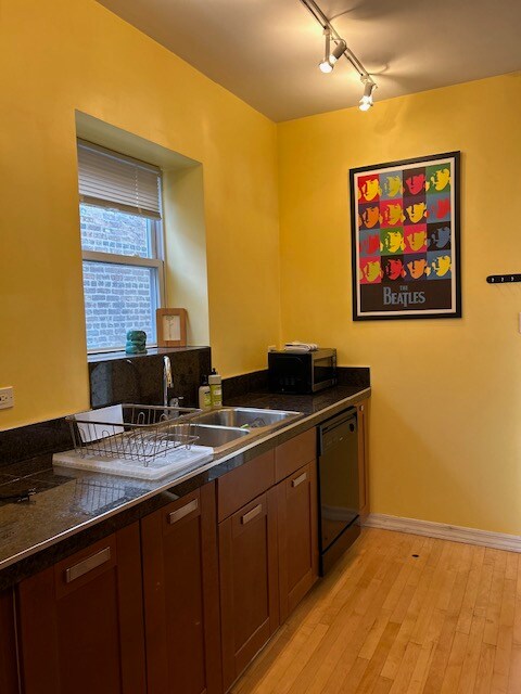 Property Id: 1352057 SUNNY, SPACIOUS two-bedroom, two-full baths apartment, on the first floor of a vintage, walk-up, brick three-flat. This 1,300+ square foot space includes central AC, fully equipped kitchen, granite counter tops, and a dishwasher. A large double living room boasts a sunroom, beautiful original woodwork and stained glass. Each bedroom is roomy and warm. The cozy common room is great for dining and relaxing. There is a brightly lit, enclosed, three-seasons porch, perfect as a quite work space or creative studio. Basement includes two (2) coin-op washers, two (2) coin-op dryers and plenty of communal storage space. Tenant is responsible for heat, gas, electric and wifi. Situated on a tree-lined street just west of Loyola University, you are a short walk to the red line and several bus routes. There's easy street parking plus lots of dining and shopping . This is a great apartment for students, couples, and visiting professionals. One year lease available with options for future years
