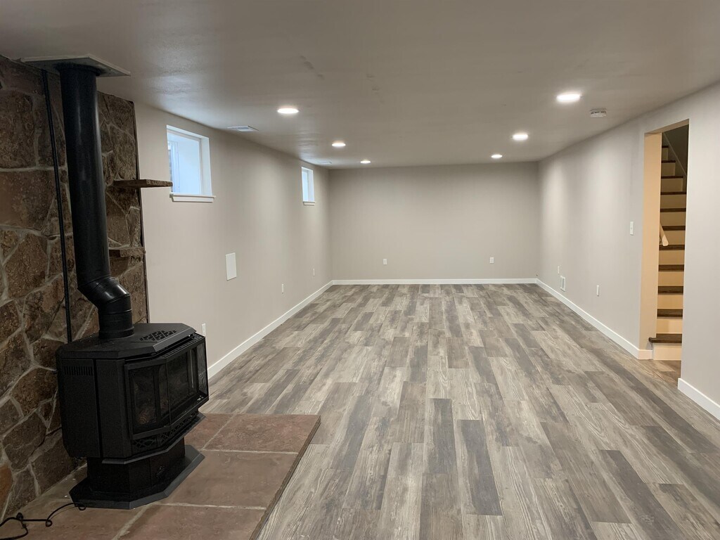 Spacious 4 bedroom home with large covered patio and fenced back yard. Home has been fully renovated with new vinyl flooring, fully painted and newly finished basement. The basement has a large entertainment room with a new woodstove. Pet friendly property. Owner looking for a 6 month lease. House is in a quiet neighborhood with fenced back yard. This is in a quiet neighborhood near parks, bike paths, Apex tennis center and Fitzmorris recreation center. It is also near shopping and restaurants.