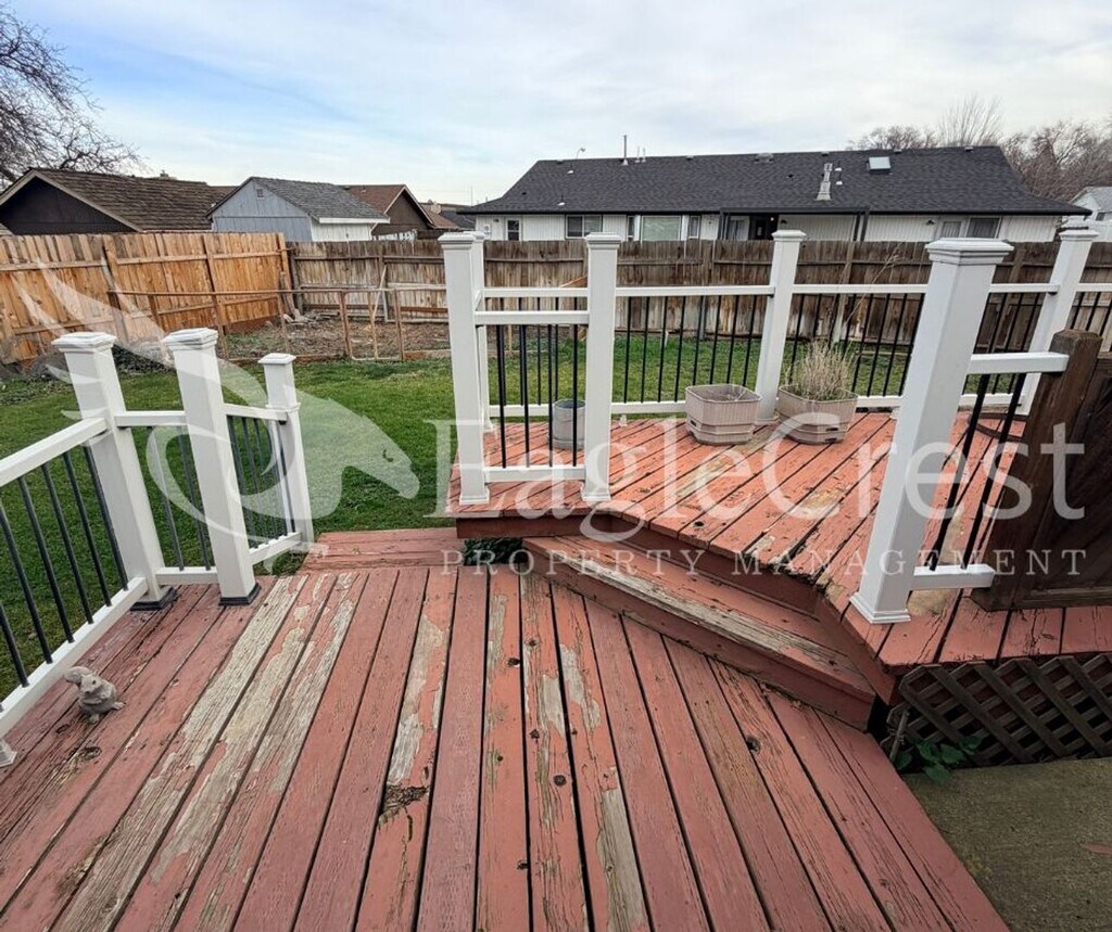 This bright and spacious updated single family home features 3 bedrooms, 2 full bathrooms, It also offers a comfortable and functional layout with modern updates throughout. The bright, open kitchen features modern finishes, abundant cabinetry, stainless steel appliances which includes a double oven, and a gas cooktop installed into the island—ideal for everyday use and entertaining. Wood flooring runs through the main living areas, with carpeted bedrooms for added comfort. The main bedroom includes private access to a large back deck, extending the living space outdoors. The fully landscaped yard includes planters, a fully fenced backyard, a storage shed, and additional RV or boat parking along the side yard. A two-car garage provides a utility sink and built-in shelving for organized storage. This property combines practical amenities with inviting indoor and outdoor spaces. 6 Month Lease to start Renews at 12 Month Lease Tenants are responsible for All Utilities