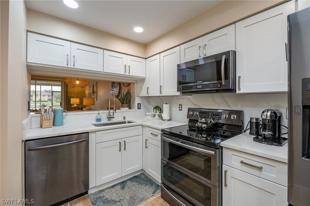 Enjoy breathtaking lake views from your new condo in sought-after Huntington Lakes,a gated,resort-style community in the heart of North Naples. This prime location offers close proximity to dining,pristine Gulf beaches,medical facilities,and convenient access to I-75. This first-floor 2-bedroom,2-bath condo features a desirable split-bedroom floor plan,gorgeous Travertine floors and a detached garage! Relax or entertain on your screened lanai,perfectly positioned to capture serene,picturesque lake views. Ideal as a full-time residence or seasonal retreat,this home offers peace of mind with electric hurricane shutters—simply lock and leave when you’re away. Huntington Lakes offers exceptional amenities,including a clubhouse,multiple community pools/spa,tennis courts,bocce ball,exercise room,library,billiards and scenic paths for walking or jogging through this lovely,private community. Exceptional shopping,dining,arts,nature trails and more all conveniently located and offering additional enhancement to your SWFL lifestyle!