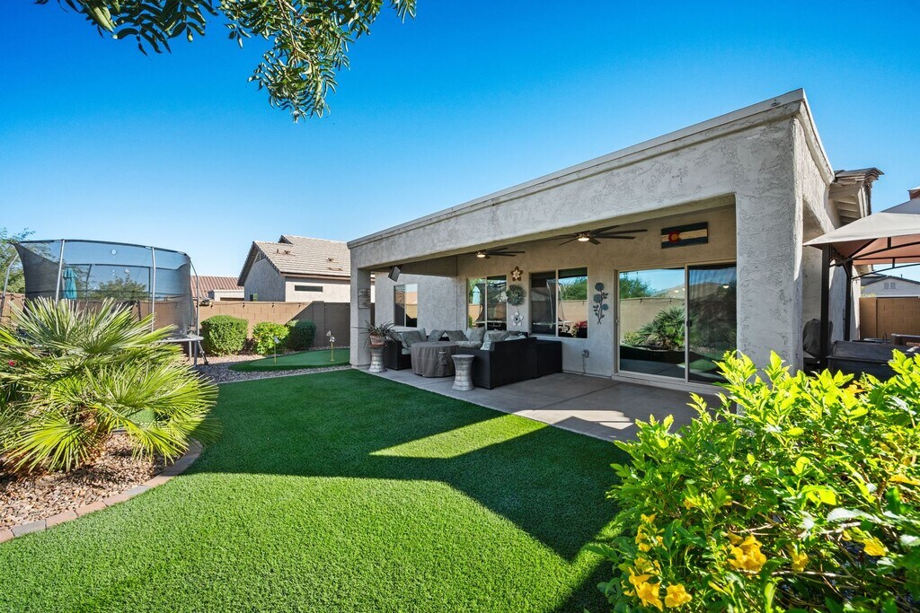 Luxurious 3 Bed, 2 Bath Rental - Rare Gem, Won't Last! Packed with premium upgrades and bathed in natural light, this modern masterpiece offers a lifestyle of luxury and comfort. High ceilings and a spacious open floor plan. Gourmet kitchen with Whirlpool stainless steel appliances, including a gas stove and microwave. The primary suite features beautiful windows and a spacious walk-in closet. Outdoor oasis features a lush, private retreat backing to a walking path with no visible neighbors. Enjoy an extended patio, double ceiling fans, and a 3-hole putting green—perfect for stargazing, vibrant sunsets, or hosting gatherings. Resort-Style Community Amenities including: Poston Butte Golf Course, lap pool, diving pool, and Big Splash Water Park with thrilling slides and a splash park. State of the Art Gym facility, endless outdoor entertainment from pickleball courts to tennis to much more! This facility also has plenty of family friendly fun with a Kid Zone, playgrounds, and more! Minutes from Safeway, restaurants, and a gas station, with downtown Florence and San Tan Valley nearby. Top Schools: Anthem K-6, ALA Elementary/High School, and Desert Rock Christian Academy, open enrollment schools with parent choice, are all within the community. Washer and Dryer onsite does not convey but one will be provided.