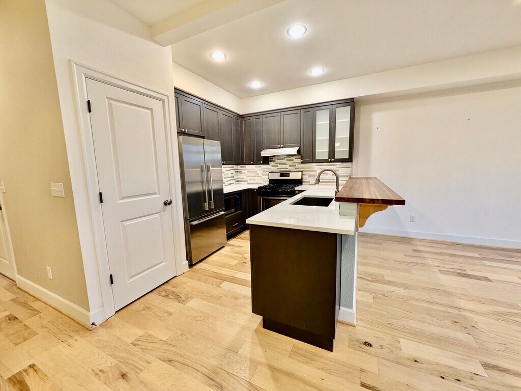 The bright, open-concept main floor is designed for effortless living and entertaining. Enjoy a cozy evening by the gas fireplace in the spacious living area, or cook like a chef in the beautifully remodeled kitchen featuring high-end finishes, stainless-steel appliances, including a gas range, Quartz counters, and custom backsplash. The gorgeous butcher block eating bar provides additional seating. Extend your living space onto the private deck, ideal for your morning coffee or a summer BBQ. The powder bath is close by. Travel to the upper level where you will find the expansive primary suite, which features vaulted ceilings with a ceiling fan, double sink vanity, shower, and walk-in closet. The laundry, hall bathroom, and two additional 2 bedrooms are just down the hall. Practical amenities include a 1-car garage with a small chest freezer, a private driveway, and additional off-street parking. You can't beat this prime location! You'll be just minutes from Barbur Blvd, the charming shops and dining of Multnomah Village, Gabriel Park, the farmers market, library, and quick freeway access to I-5 for an easy commute. Terms: 12-month lease County: Multnomah Accessible Dwelling Unit: No Open Application Period Begins: 12/23/2025 Pet Policy: No pets please Special Terms: No smoking is permitted on the premises. Proof of renters' insurance is required prior to and throughout tenancy. The property is included in a furnace filter replacement program. Tenants will pay an additional $10 per month and receive quarterly shipments of the filters. All exterior holiday lighting shall be removed from the structures within 15 days after the holiday. Please use safe wood cleaners on the butcher block counter and floors. Please use felt pads on all furniture on hardwoods. The chest freezer in the garage is for tenant use; the owner will not repair or replace it. Year Built: 2010 Heat: Gas Utilities Included in Rent: Trash- Owners will pay for a 35-gallon trash receptacle and recycling in jurisdictions where mandated. Any additional trash above the 35-gallon container will be the tenant’s responsibility to pay. Utilities Paid by Tenant: PGE, NW Natural, Portland Water/Sewer Appliances: Dishwasher, Disposal, Gas Oven/Range, Microwave, Refrigerator, Washer, and Dryer Garage: 1 Car Garage (with garage door opener). Room for another car in the driveway. Vehicle Restrictions: Max 3 vehicles (No RV, boat, or trailer) SCHOOLS: Grade School: Rieke Middle School: Gray High School: Ida B. Wells-Barnett Information deemed reliable but not guaranteed.