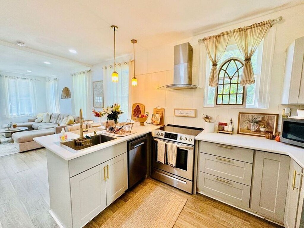 Introducing a charming 4 bedroom, 2 bathroom bungalow located in the heart of Savannah, GA, just steps away from Forsyth Park. This home boasts an open floor plan with a breakfast bar, perfect for entertaining guests. The updated kitchen features stainless steel appliances and elegant marble countertops. Enjoy the convenience of tile in the bathrooms and laminate flooring throughout. The spacious pantry with a sliding barn door adds a touch of rustic charm. Relax on the front porch or retreat to the nice fenced-in backyard for outdoor enjoyment. With new vanity sinks and modern finishes, this home is move-in ready and waiting for you to make it your own. For more information and applications visit