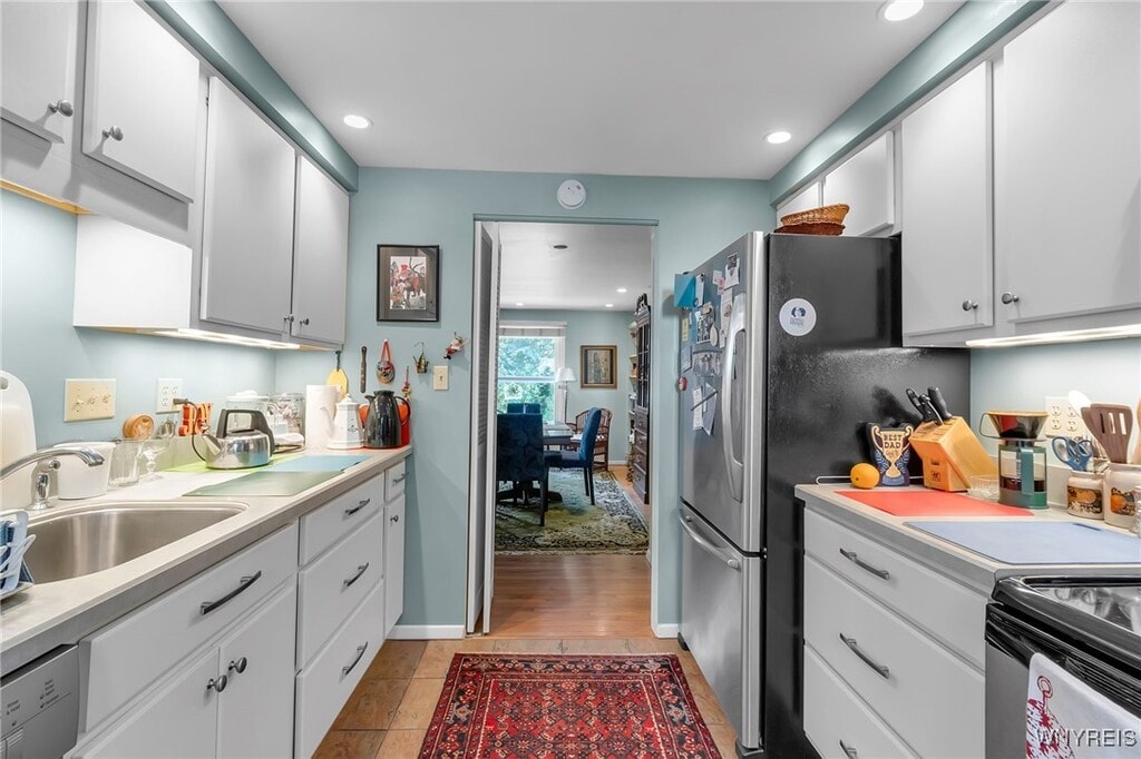 Welcome to 666 West Ferry,Unit 33,where peaceful privacy meets the vibrant convenience of Elmwood Village living. This bright,tastefully,and lovingly maintained home offers a warm,inviting atmosphere throughout. The first floor features a spacious living room with original hardwood floors,an updated galley-style eat-in kitchen,and convenient half bath,for everyday living and entertaining. Upstairs,you’ll find two generously sized bedrooms,a full bath,and plenty of storage. Enjoy a full,dry basement complete with washer and dryer,with all appliances included. Step outside to the back porch and tranquil green space that feels worlds away from the city,with mature trees providing privacy and serene views from the rear-facing windows. Even more convenience,the homeowners' association removes snow and maintains the lawn and most landscaping,for low-maintenance living. Easy to show and available immediately.