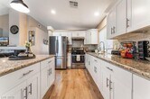 Beautifully renovated single-story pool home featuring vaulted ceilings and modern upgrades throughout. This 3-bedroom, 2-bath residence offers an open and inviting layout with laminate and tile flooring, soft-close kitchen cabinetry, granite countertops, and stainless steel appliances. Includes washer and dryer for added convenience. Solar shades and window coverings are installed throughout the home. Enjoy a private backyard with a pool—monthly pool service is included in the rent. One pet allowed.