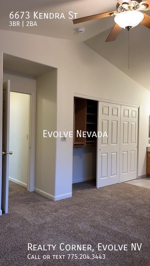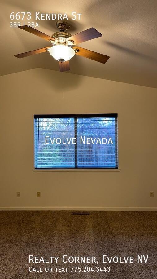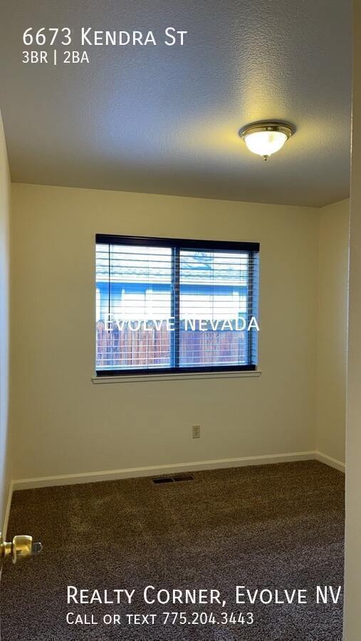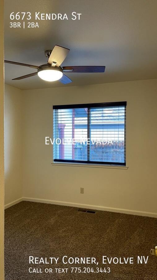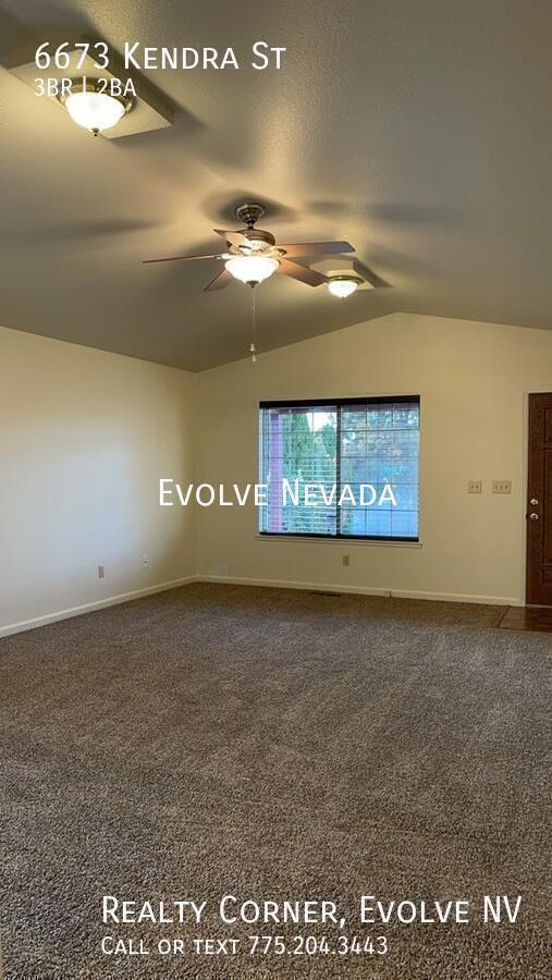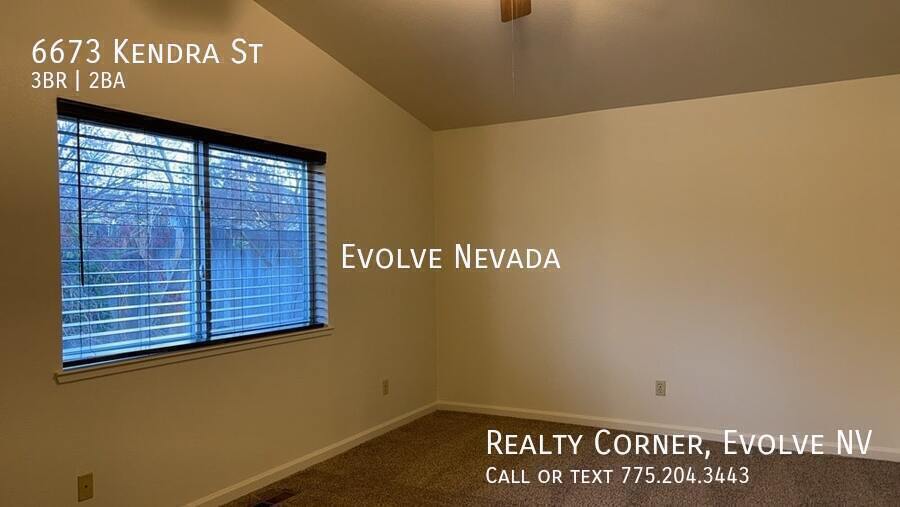 Nestled in Spanish Springs, this 1,466-square-foot, 3-bedroom, 2-bath home offers a welcoming, single-level layout. New paint, carpet and vinyl flooring throughout home. The living room is bright and spacious, with abundant windows that flood the space with natural light. The kitchen is well-equipped with a stove/oven, refrigerator, microwave, and dishwasher, highlighted by granite countertops and ample cabinet space. A large sunken dining room provides a perfect setting for gatherings. The backyard features a patio and mature landscaping, ideal for outdoor living. An attached three-car garage adds convenient storage and access. Located near schools, shopping, and restaurants, this home combines comfort, practicality, and a great location in one appealing package. Text or Call to request a tour! Lease Terms: 12-month lease. Total monthly charge of $2,520.10 includes rent of $2,395.00, sewer of $41.98, trash of $33.17 and resident benefit package of $49.95. Tenant is responsible for electric, gas and water. Deposit, rent and any additional fees are due upon move-in. Deposit starts at the rental amount but could vary depending on application criteria. Resident Benefit Package: All leases include a resident benefit package. The following benefits are provided: 24/7 rent payment portal access with multiple payment options, 24/7 maintenance hotline access, credit score boost, air filter delivery service, $1million identity protection, home buying assistance, move-in concierge, along with renters & liability insurance. The Resident Benefit Package is required for all leases and is billed at $49.95 a month. Pets may be allowed upon completion of a pet application, pending pet screening and owner approval. The Pet Application Fee is $75. Once approved there is a one-time $400 pet administration fee for the first pet and $200 for the second pet along with a $25 per month pet administration fee. Pet screening profiles from are required for all animals. Please be advised there has been fraudulent activity in this area and on rental websites. Any contact being made to you will only be from an Evolve NV representative. We do not ask for nor accept any deposit or rent payment until an application has been submitted. Please feel free to contact us if you believe you have been contacted by an unauthorized individual. Managed by Evolve Nevada, a division of Realty Corner. Nevada Broker #B.143842