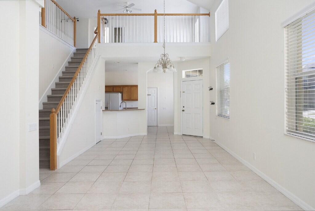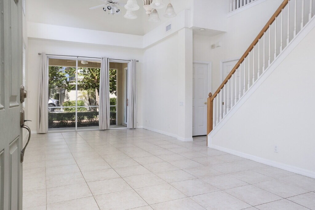 Top Shelf - Well sought after Palm Brooke Gated Community - 3 bedroom 2.5 bathroom Townhome with 2 car garage. Largest model townhome, ready to move in. This 2-story townhome is a spacious unit. The second floor has vaulted ceilings with two bedrooms, 1 bathroom, and a large loft area that could be used as a den, office, or play area. The first floor features an eat-in kitchen, breakfast bar, dining area with a half bath, and living room leading to the screened lanai. Large master Bedroom on the First Floor. The Master Bathroom offers double sinks, a full bathtub, a walk-in shower, and several closets. The very functional kitchen includes granite counters and updated appliances. This corner unit has a two-car garage. HOA application and deed restrictions apply. The community pool is steps away. No Pets with Lease/Tenants. All rooms with Carpet will be replaced with Luxury Vinyl flooring