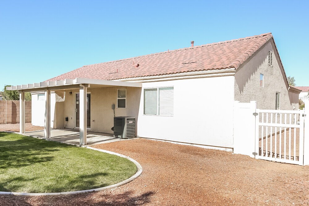 Please note, our homes are available on a first-come, first-serve basis and are not reserved until the lease is signed by all applicants and security deposits are collected. This home features Progress Smart Home - Progress Residential's smart home app, which allows you to control the home securely from any of your devices. Learn more at Want to tour on your own? Click the “Self Tour” button on this home’s listing or call to register for a self-guided showing at a time that works best for you. With an attractive stucco exterior and an attached two-car garage, this North Las Vegas rental home has great curb appeal. It offers three bedrooms and two bathrooms in 1,320 square feet. The open layout starts with modern wood-look flooring welcoming you into the spacious living room, where you?ll find several big windows and a vaulted ceiling. Tile flooring flows from beneath the dining room's chandelier to the kitchen's stainless steel appliances. The master suite features a large closet and a private bathroom with a combination bathtub and shower. Outside, the property includes a shaded patio in an enclosed backyard. Call today to schedule your tour.