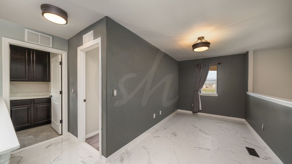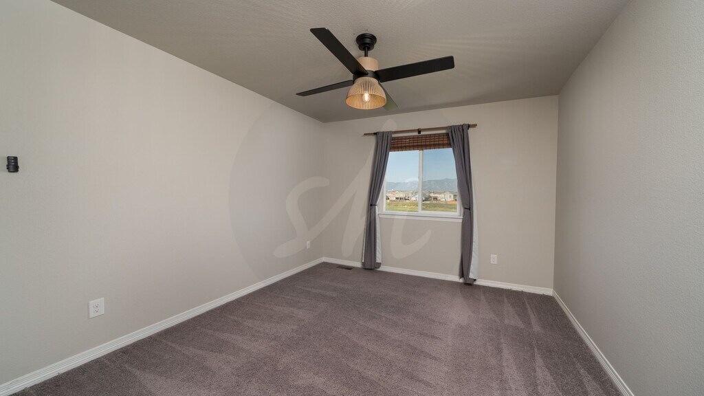 This exceptional home welcomes you with a formal dining room and butler's pantry. Open floor plan flows into a spacious kitchen with large island and bright living room featuring expansive windows and loft above. Main floor is complete with a convenient half bath. The upper level boasts a luxurious primary suite with 5-piece bathroom, three additional bedrooms, full bath and convenient laundry room. The finished basement offers a spacious bonus/rec room plus bedroom and full bathroom. The fully fenced backyard provides breathtaking mountain views and privacy. Complete with solar panels, 3-car garage and central air conditioning this home offers several amenities. With easy access to Fort Carson, Peterson Space Force Base, Highway 25, Powers Corridor, Parks and Schools. This home is also one mile away from the desirable Grand Mountain School. For more information and an application, please visit 3d Tour: