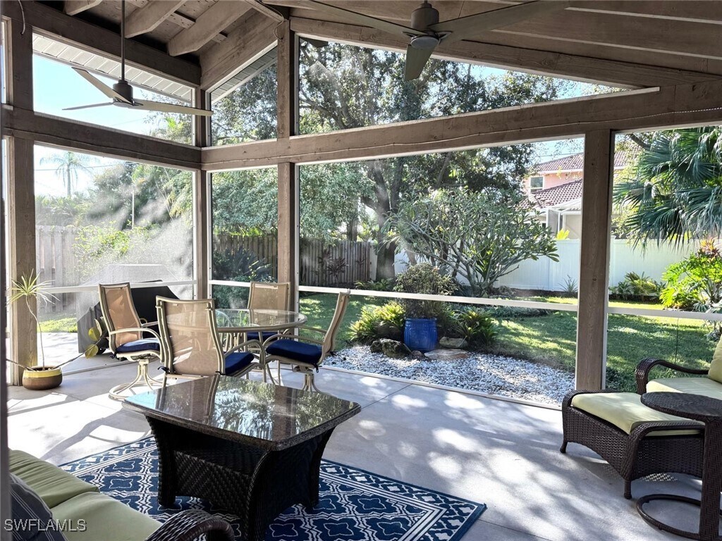 Less than one mile from Vanderbilt Beach! This beautifully updated home,located in the heart of North Naples,west of 41 on the coveted 600 block of Naples Park,offers the perfect blend of comfort,quality,and convenience. With no HOA,enjoy the freedom of living the Florida lifestyle,just a short stroll or bicycle ride to Naples’ pristine beaches. Recent updates include a new roof (March 2025),new tankless water heater (January 2025),and hurricane-impact windows,doors,and garage door — making this property both beautiful and secure. Enjoy close proximity to the best of Naples,including Vanderbilt Beach,Wiggins Pass State Park,Mercato,Waterside Shops,Pelican Bay Park,Pavilion Shops,Ritz-Carlton,Publix,Trader Joe’s,Whole Foods,medical facilities,fitness centers,movie theaters,and countless dining options. Featuring 2 bedrooms and 2 full baths,the home boasts a spacious lighted lanai with cathedral ceiling,which adds significant living space and is ideal for outdoor relaxation and entertaining. The private,fenced yard is surrounded by serene gardens,and the built-in outdoor grill is conveniently connected to the home’s propane gas system. Inside,you’ll find custom wood cabinetry,high-end granite,fieldstone flooring,and a bright,open floor plan filled with natural light. The open kitchen features stainless steel appliances,a central skylight,modern designer pendant lights with counter seating as well as a spacious dining area. Enjoy the convenience of a large laundry room and one-car garage that comes with a 240 amp EV charger,additional room for a golf cart,bicycles and plenty of storage. This home is offered turn-key furnished and move-in rent ready — Welcome home to Naples living at its finest!