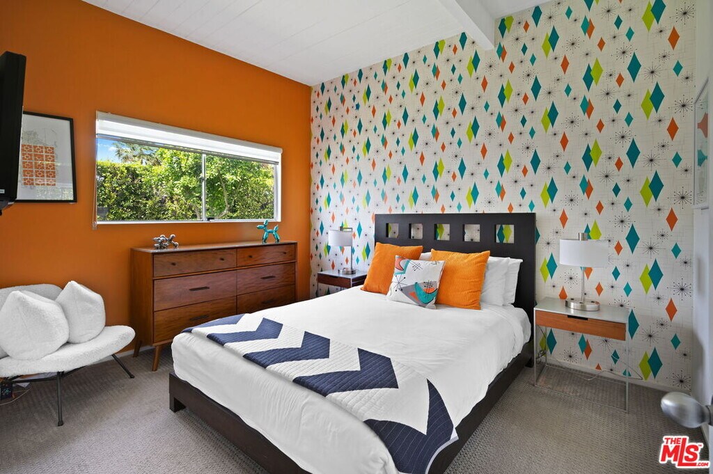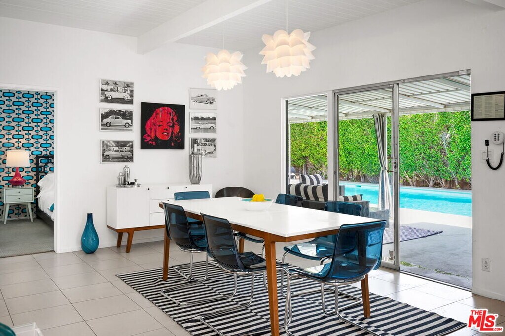 Available for lease starting October 20. FULLY FURNISHED MEISELMAN - a piece of Palm Springs history. This indoor/outdoor retreat comes complete with a custom bar for sunset cocktails, a sophisticated outdoor living room, a cozy firepit surrounded by Adirondack chairs and an expansive yard for the kids or pups to run themselves ragged. Oh - and don't forget the oversized pool and hot tub for year-round entertaining! When you just can't take any more of the breathtaking sunsets or panoramic mountain views, retire to the chic interior. With its vibrant colors and stylish mid-century wallpaper, every room pops with personality. It's a blend of classic Palm Springs flair and modern comfort. Home has an electric car charger in garage. Landlord pays all utilities except gas & cable/internet. MLS# 25595049