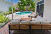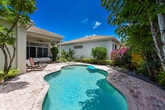 Newly renovated. Clean contemporary, open concept. Rarely available Old Course membership included as well as all Broken Sound Club has to offer One story, 2 bedroom plus den/office, 2 bath home. The oversized pool/patio area is lushly landscaped for privacy. The kitchen has quartz countertops and stainless steel appliances. Stone flooring in main living areas and wood floors in bedrooms.
