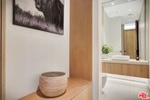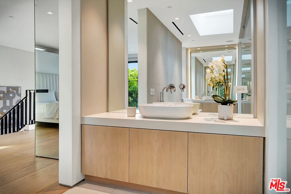 Modern Luxury in the Heart of LA, 5 Bedrooms - 5 Bathrooms + 1-Bedroom Guest House - Saltwater Pool + Spa - Designer Finishes - Smart Home Technology Welcome to this strikingly elegant, architecturally significant modern estate, a masterclass in design and sophistication. this residence is located just moments from shopping and dining .Meticulously crafted with the finest materials and innovative technology, this 5-bedroom, 5-bathroom residencecomplete with a fully detached 1-bedroom guest houseoffers a lifestyle of effortless elegance and comfort.Step inside and be enveloped by soaring 12-foot ceilings, custom real white oak slats and hidden-panel wood walls, soundproof Fleetwood windows, and a seamless blend of indoor-outdoor living. Floor-to-ceiling glass walls open the home to lush outdoor spaces, blurring the boundaries between inside and out.At the heart of the home lies a state-of-the-art chef's kitchen, featuring sleek Italian cabinetry, dual Miele dishwashers, and a striking porcelain island with integrated hidden phone chargersdesigned for both gourmet entertaining and everyday functionality.The open-concept living and dining spaces are adorned with designer furnishings by B&B Italia, curated dcor, and a Lutron lighting system that allows for ambiance at the touch of a button. A Bose surround sound system flows throughout every room, including the guest house, offering a premium audio experience inside and out.Retreat to the luxurious primary suite, complete with a private terrace, and a spa-like en-suite bathroom showcasing Italian natural limestone, a steam shower, soaking tub, his-and-hers vanities, and a separate water closet. A concealed, full-wall wardrobe features integrated lighting.Each of the additional bedrooms and bathrooms are thoughtfully designed with the same attention to detail featuring rich wood paneling, Graff fixtures, and imported stonework that elevate everyday living.The resort-style backyard is a sanctuary of tranquility and style, boasting a saltwater pool and spa, a fully integrated entertainment system, and multiple outdoor lounging and dining areas ideal for hosting or relaxing under the stars.The detached guest house is equally impressive, offering a private bedroom, full bath, and a chic kitchenette, perfect for guests or extended stays. MLS# 25563881
