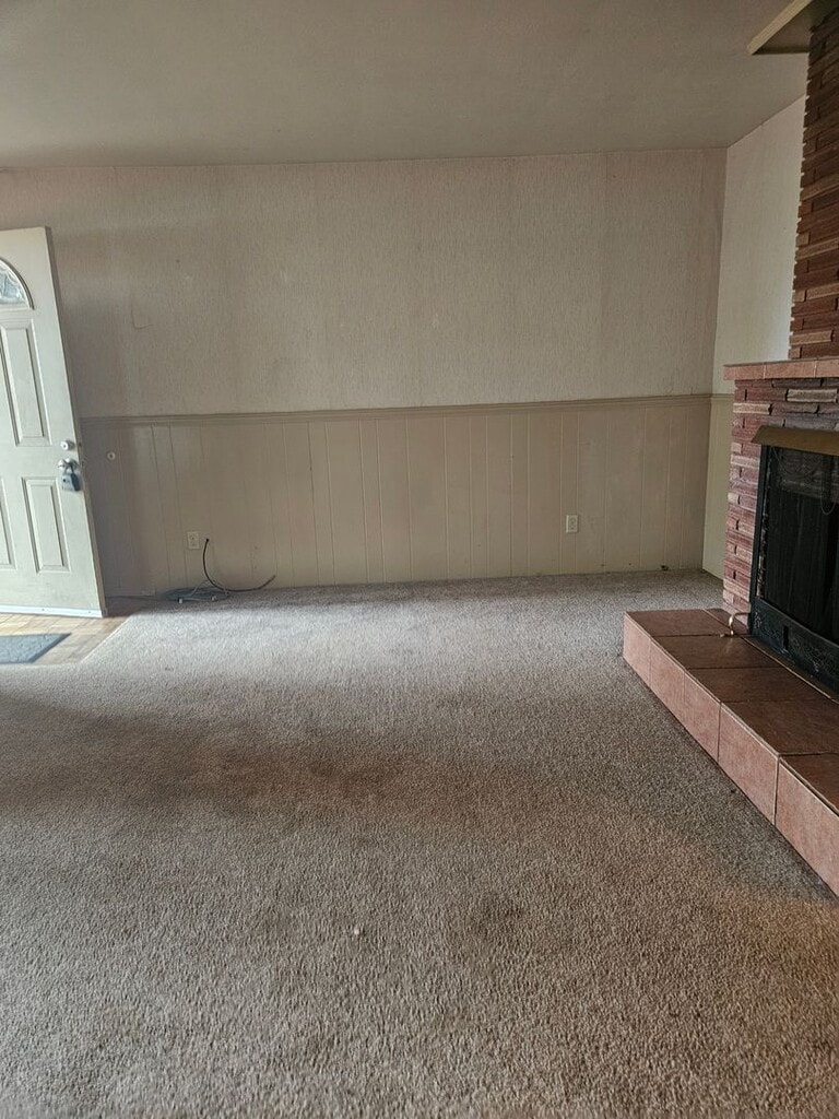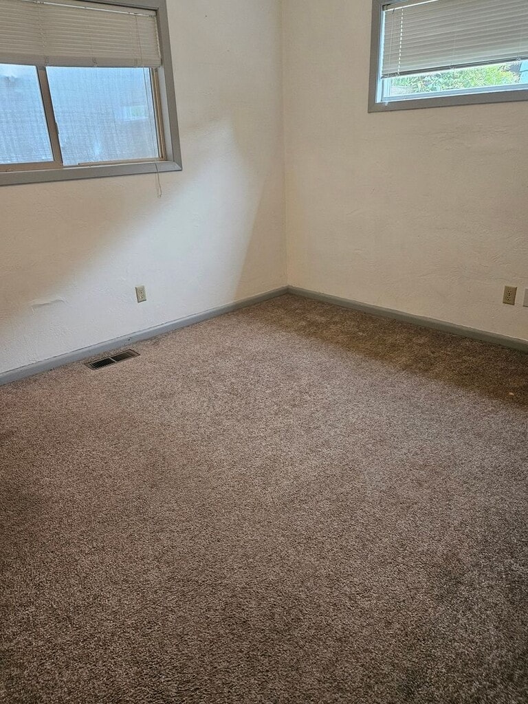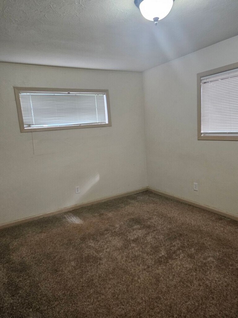 Ranch-style duplex on cul-de-sac Single-car garage, driveway space New carpet 2 bedroom, 1 bath Small, fenced in back yard. Large living room Spacious bedrooms and bathroom Unit has been recently painted Note: fireplace does not work
