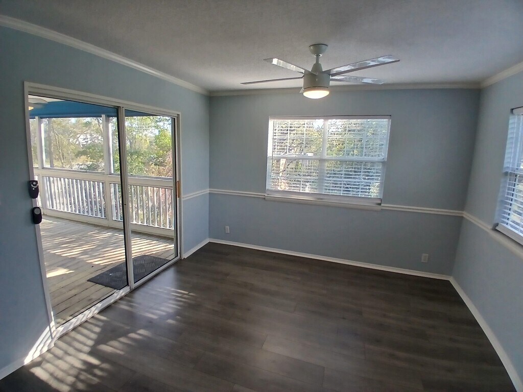 Live the coastal dream in this charming 3-bedroom,2-bathroom single-family home located directly across from the pristine white sands of Bald Point. This 1,184-square-foot residence offers a rare opportunity for a full-time,yearly lease in one of Florida's most tranquil coastal communities. This beautiful home features plenty of room for living and entertaining with a large 14 x 18 living room and separate dining room. Plenty of cabinet space in the kitchen and a laundry room with washer and dryer are included. A large 12 x 14 master bedroom with full bath and two additional 10 x 11 rooms and full guest bath make this home perfect for families or anyone needing extra room for visitors or for home office space. Under the home you will find covered parking for vehicles/boats,with a workshop space and shower for those trips to the beach,which is only a walking distance away!