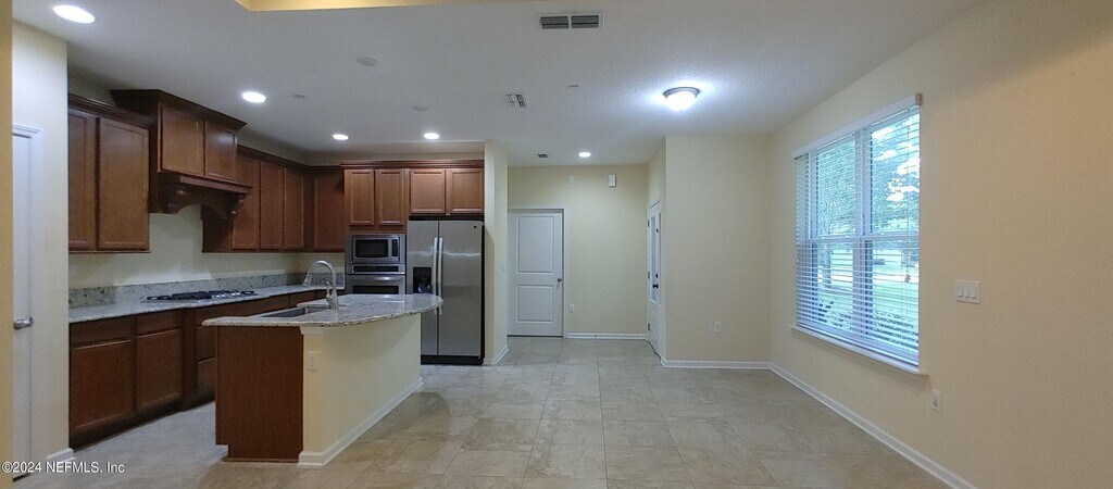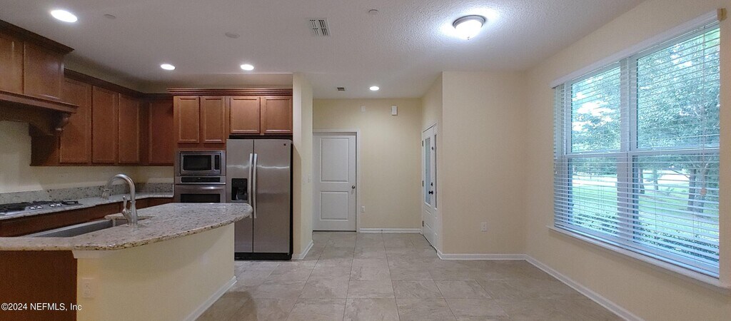 Beautiful,single-floor,updated end unit townhome with 3 bedrooms,2 bathrooms,and a double car garage located in the heart of Nocatee. The townhome features a private entry and an open floor plan with a gourmet-style kitchen,stainless steel appliances,updated 42-inch cabinets,and an island overlooking the main living and dining area. The spacious bedrooms offer a comfortable living experience,and you can enjoy the peaceful outdoor life on the screened-in lanai with a view of the preserve. Additionally,residents can take advantage of Nocatee's amenities such as the splash park,community park,dog parks,fitness facility,zip line,biking,and much more. The home is located near top-rated schools and offers easy access to major highways,dining,and shopping options.