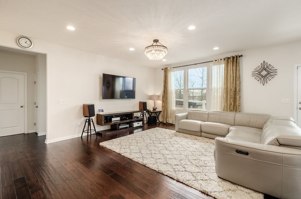 Property Id: 2442945 This gorgeous, move-in ready home with 5 Bed, 3 Bath and 3 Car Garage in Powell offers a spacious and functional layout with modern upgrades throughout. The open-concept first floor features a generous kitchen with ample cabinetry, a butler's pantry, eat-in space, and a bright family room filled with natural light, all highlighted by stylish LVP flooring. A convenient first-floor in-law suite provides flexibility as a fifth bedroom, guest space, or home office. Upstairs, the expansive owner's suite boasts an updated bath with dual vanities and two walk-in closets. Three additional bedrooms, all with walk-in closets, share a well-appointed full bath. A large loft and second-floor laundry add to the home's practicality and comfort. Enjoy outdoor living on the brand-new deck overlooking green space. The community features a playground and a scenic walking bridge with direct access to nearby elementary and middle schools.