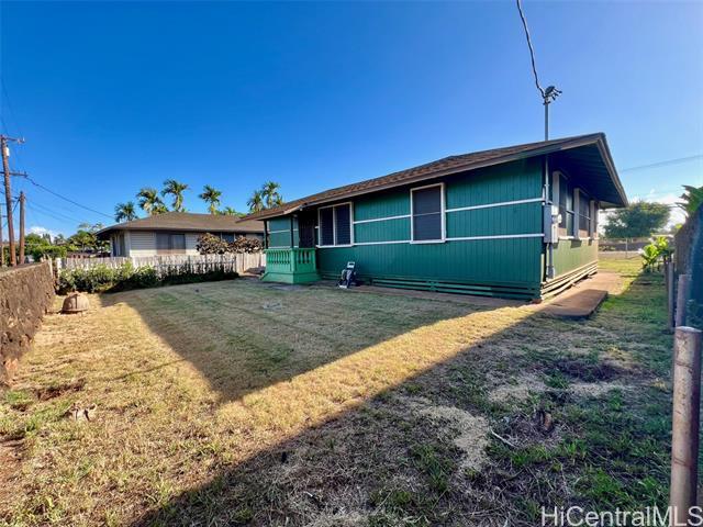 Erica LehmkuhlPet friendly, single family North Shore home with large fenced yard that backs up to the Waialua Bike Path. Large storage area off carport can be used as an office, shop or play room with half bath just outside the door and outdoor shower near the driveway. Two blocks from the beach, mountain views, 1/4 mile from Waialua Elementary School and Waialua District Park with swimming pool, pickleball/tennis courts, playground, bathrooms, baseball/soccer/football field with lights for night time games. Large living area with extra bonus room and additional mud room/office off the kitchen. Plenty of parking inside and outside the fenced yard. Come experience small town living with big time charm and a great sense of community!Easy 15 minute commute to Schofield Barracks, 20 minutes to Wheeler Army Airfield, HMR and NCTAMS.