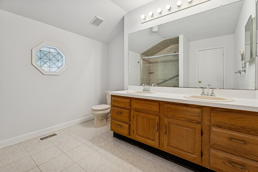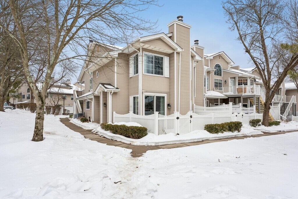 Premium location, End unit! Just Renovated, hardwood floors throughout and painted neutral. This bright end unit home features an open floor plan, brand new hardwood floors, and fresh neutral paint throughout. The living room offers a stunning gas fireplace and sliding doors that lead to a private patio overlooking the tennis courts. The spacious dining room is conveniently located next to the kitchen and flows openly into the living area, perfect for entertaining. The eat in kitchen includes a large window and direct access to the attached garage. Completing the first floor is a powder room and laundry. Upstairs, you'll find two generously sized bedrooms, each with its own private en-suite bathroom. This sun filled home is warm and inviting, and the community amenities include a gym, pool, tennis courts, pickle ball courts, playgrounds, and walking paths.