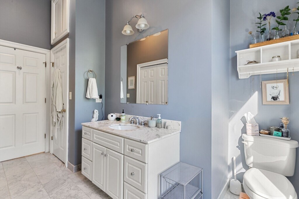 Sunny,oversized penthouse 1 bedroom with vaulted 12 foot ceilings and hardwood floors throughout. This beautiful condo-for-rent has an open concept living space with shaker style cabinets,granite countertops,stainless steel appliances and a fantastic island. The kitchen overlooks that living area and can fit a large sectional also focusing around a beautiful gas fireplace. The bedroom is very large and has an over abundance of storage space throughout. There is central heating and cooling,w/d in unit and a private patio off the back of the home. Friendly for small dogs and cats! MLS# 73445619
