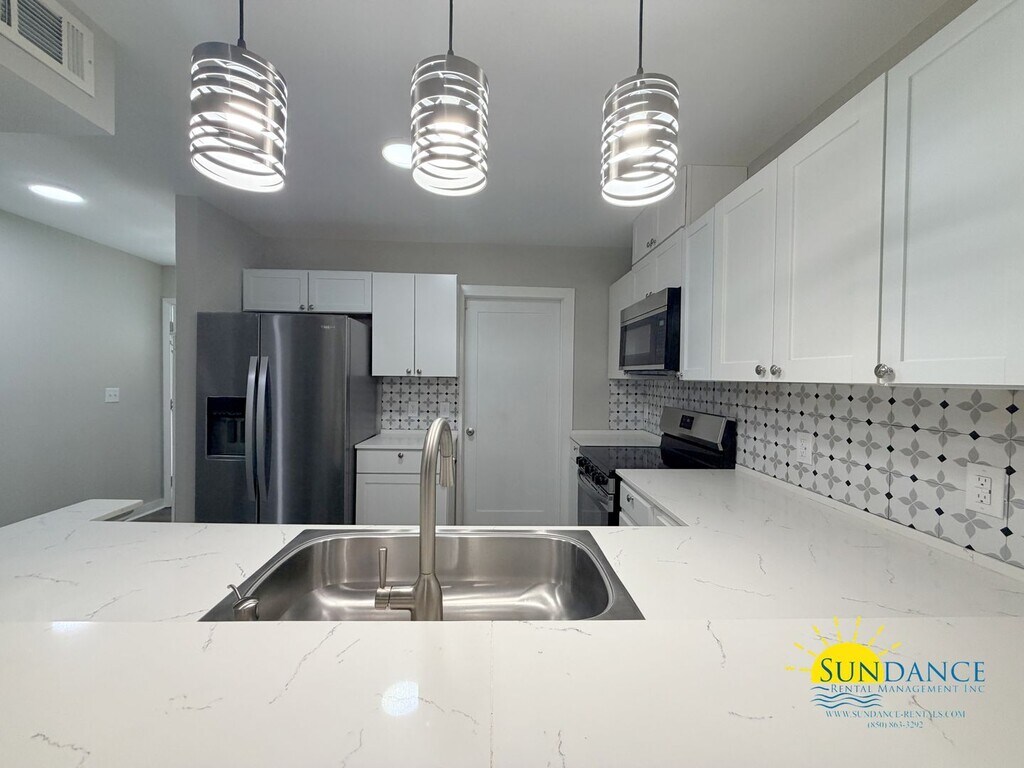 Located in Fort Walton Beach just minutes from Eglin Air Force Base, Hurlburt Field, shopping, and dining, this beautifully maintained 2-bedroom, 2-bathroom home offers both comfort and convenience. The home features a 1-car automatic garage with additional driveway parking and a bright open living and dining area with durable LVP flooring throughout. The full kitchen is equipped with stainless steel appliances, granite countertops, a breakfast bar, and an electric glass cooktop, making it ideal for everyday living and entertaining. The primary suite includes double closets and a private bathroom with a shower/tub combo, another good sized bedroom with a full bathroom is located towards the front of the home. Washer and dryer hookups are located in the garage. Step outside to enjoy the open patio and fully fenced backyard, complete with patio furniture included (AS-IS), plus added features like a Vivint security system and dehumidifier (AS-IS) to complete this inviting home. Pets are accepted with a non-refundable $250 per pet plus a $50 admin fee (subject to owner approval) No Smoking is Permitted. In addition to the rental amount, all Sundance Rental Management residents are enrolled in the Resident Benefits Package (RBP) for $25.00/month which includes liability insurance, credit building to help boost the resident’s credit score with timely rent payments, and much more! The benefits can be found on our website under Tenant FAQ.