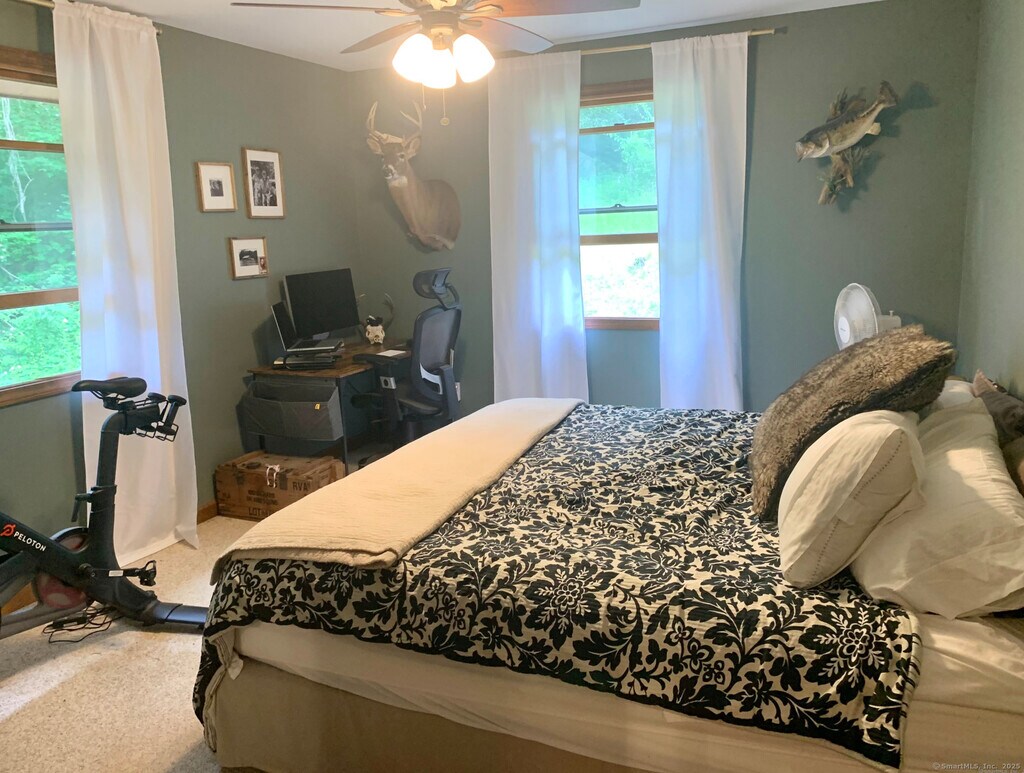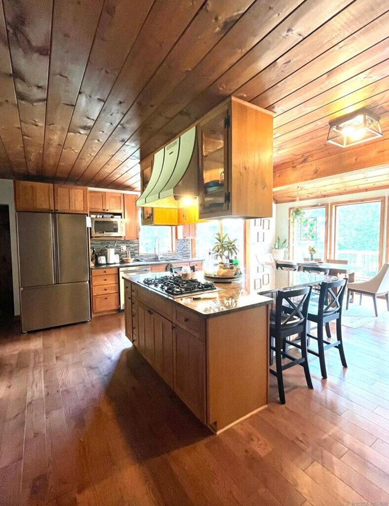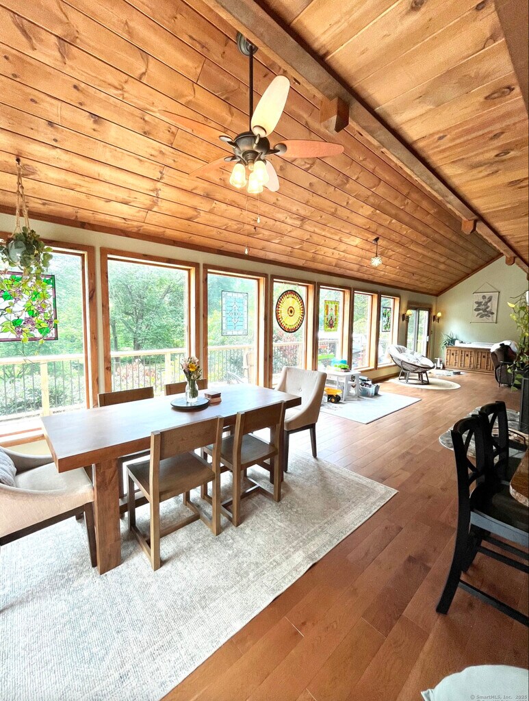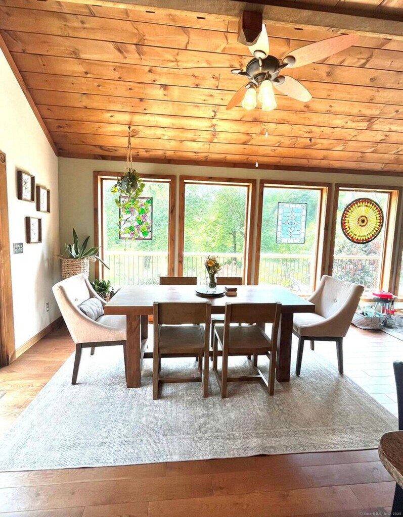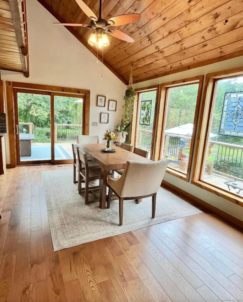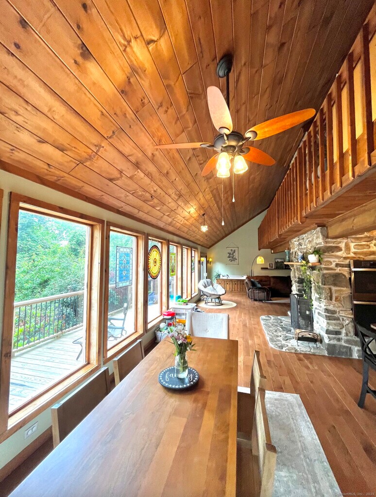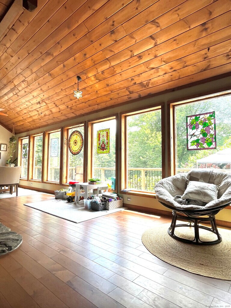 Call for Availability - A rare opportunity to rent a spacious, tranquil retreat in Moodus. This 5-bedroom, 3-bathroom home is set on just over seven private acres and offers a unique blend of open land, wooded trails, and peaceful water views. Set back from the road, the property includes a large front yard, a small pond with a dock, and a huge wraparound deck overlooking both - ideal for quiet mornings or hosting. A crushed stone fire pit area adds to the outdoor appeal and is perfect for relaxing evenings. Inside, the home features an open floor plan with vaulted ceilings and tongue-and-groove woodwork throughout, all built around a massive stone fireplace that brings warmth and character to the main living area. The first floor has been updated with central air, new hardwood flooring, and the kitchen includes stainless steel appliances and a large pantry. With five large bedrooms and three full bathrooms, the home offers plenty of space and flexibility. A two-car garage provides additional storage and convenience. This is not your typical rental - a peaceful, private setting with modern updates and natural beauty all around. Just a short drive to local lakes and the Goodspeed Opera House, this property offers a rare chance to enjoy a quiet lifestyle without sacrificing access to nearby amenities. MLS# 24132935