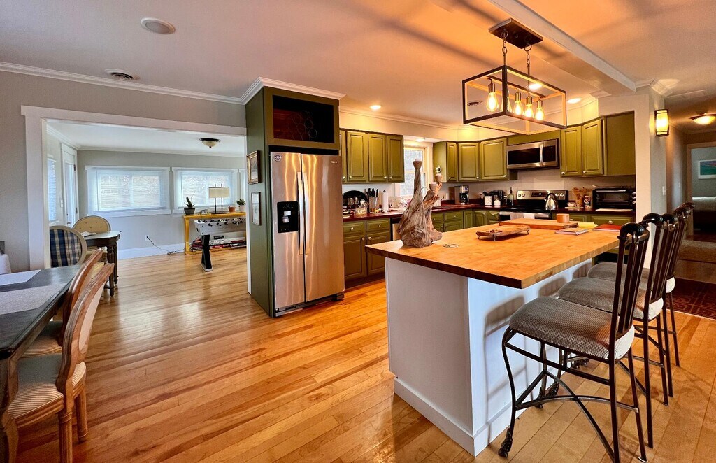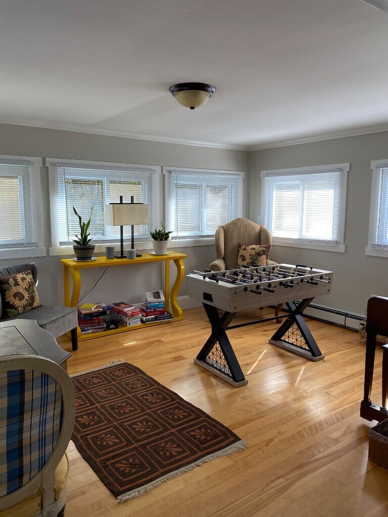5 bedrooms and sleeps 10-12 adults. It is a lovely 2 story home featuring modern yet cozy decor. It also has great entertainment options on the property itself such as an in-ground pool, foosball table, piano, and games. It is not only comfortable for sleep, but also great for entertaining and relaxing inside on those rainy days. Beach rights and located on the bike/walking path.