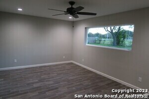 This house has gone through a stunning transformation in the last few years. Its definitely more than meets the eye" over here. The entire home was rewired up to modern safety standards, all of the flooring was replaced, fresh paint in & out, new energy efficient double pane windows were installed, some new doors, the plumbing fixtures/toilets/ceiling fans/lights were all replaced. Total master bathroom remodel. The kitchen was blown out so everything in there is new as well...custom solid wood/ply cabinets, new appliances, granite, under cabinet lights, you name it. The configuration of the kitchen was changed to make it larger as well. This home also features a very roomy oversized garage. Plenty of room for 2 vehicles and then some extra space next to that. Out back you have a decent sized yard and a really cool view of the park & baseball field. This home is VERY CLOSE TO Randolph AFB and there is a "military discount" being offered. **No hidden junk fees** No "processing fees", no "tenant packages", no "pet rent", etc...none of this nonsense. What you see is what you get***Home is currently occupied until April 30th. Showings can still take place as long as you are accompanied by a licensed Realtor here in Texas. No trespassing or bothering the current tenants please."