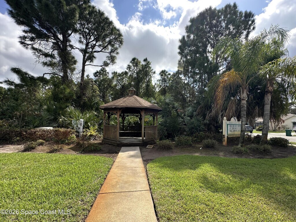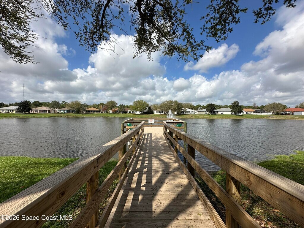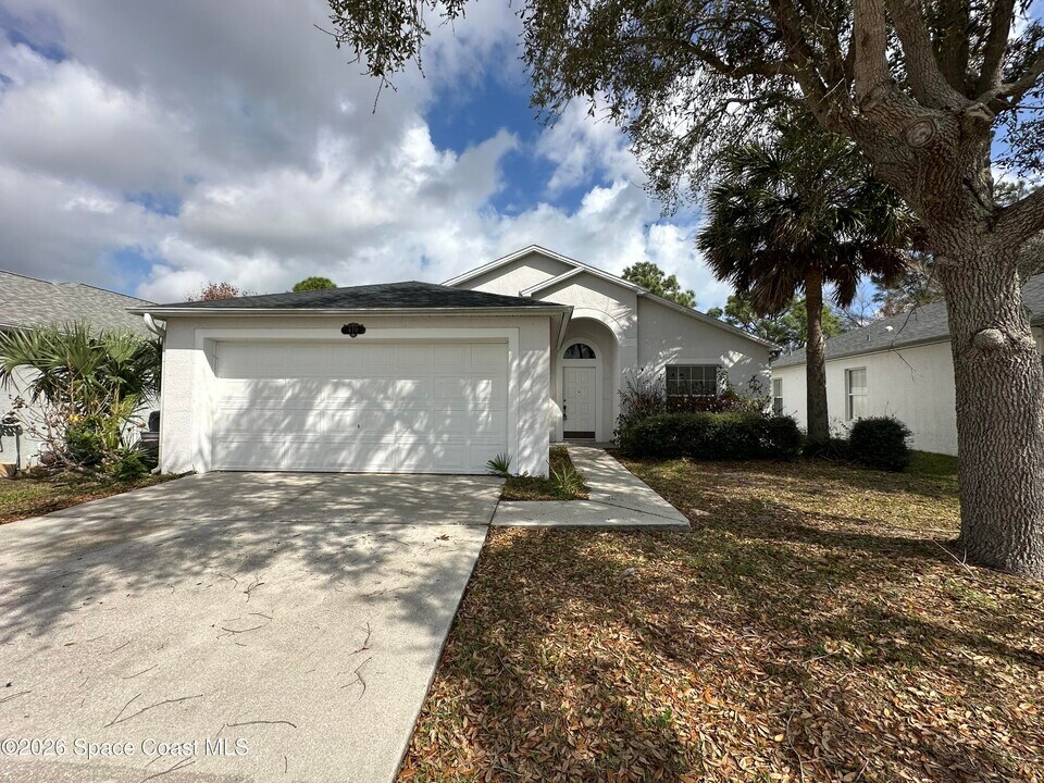 Wonderful location centered between the heart of Palm Bay and downtown Melbourne. Nearly endless amenities within a 5 mile radius. Concrete block with vaulted ceilings. 3 bed,2 bath split plan has a formal living and dining area to greet you. Open ceiling to eat-in kitchen and family room. Indoor laundry. Spacious primary bedroom with huge walk-in closet,soaking tub,walk-in shower. Wood look tile throughout for easy maintenance. Large 2 car garage and garage door opener. Sliders to back yard with peaceful view of the water and beautiful shade trees. Lawn care included. Pets may be considered on a case by case basis with non-refundable pet fee. No smoking of any kind on the property please. Community Gazebo and dock are available for use in this peaceful community with sidewalks and a conservation area for nesting eagles. MLS # 1061803