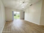 Wonderful location centered between the heart of Palm Bay and downtown Melbourne. Nearly endless amenities within a 5 mile radius. Concrete block with vaulted ceilings. 3 bed,2 bath split plan has a formal living and dining area to greet you. Open ceiling to eat-in kitchen and family room. Indoor laundry. Spacious primary bedroom with huge walk-in closet,soaking tub,walk-in shower. Wood look tile throughout for easy maintenance. Large 2 car garage and garage door opener. Sliders to back yard with peaceful view of the water and beautiful shade trees. Lawn care included. Pets may be considered on a case by case basis with non-refundable pet fee. No smoking of any kind on the property please. Community Gazebo and dock are available for use in this peaceful community with sidewalks and a conservation area for nesting eagles.