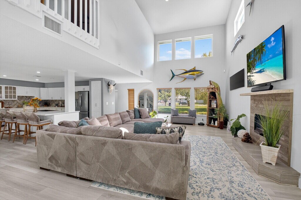 Step into your own private resort on just over an acre of lush, secluded property minutes from Lake Osborne, the Lake Worth Pier and beaches. This fully furnished luxury retreat offers a resort-style pool with sun shelf loungers, hot tub, hammock grove, fire pit lounge, and expansive covered patios with a full outdoor kitchen. Inside, enjoy a bright open layout with a chef's kitchen, spacious living areas, serene bedrooms, and a custom pet grooming station. With no HOA, there's room for boats, RVs, and trailers, plus quick access to the Lake Osborne boat ramp, beaches, shopping, dining, and I-95. Don't miss out on this luxury South Florida oasis!
