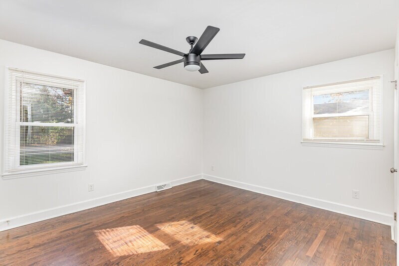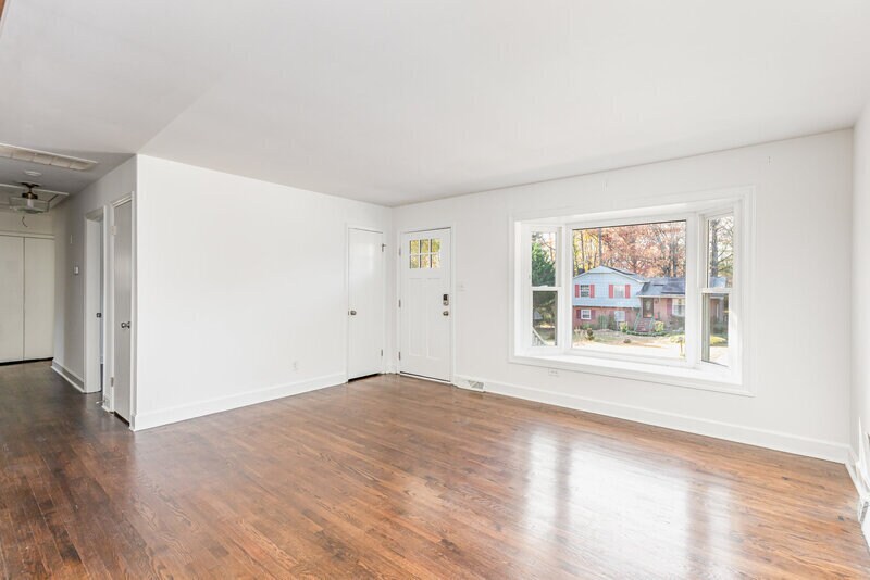 Welcome to 6701 Lynmont Drive – an updated and beautifully maintained home offering style, comfort, and prime convenience in East Charlotte. This charming residence immediately stands out with its inviting curb appeal, featuring white painted brick exterior that gives the home a modern, timeless look. Step inside to an open-concept layout that effortlessly connects the kitchen, dining area, and family room—perfect for everyday living. The space is highlighted by restored original hardwood floors, eye-catching faux wood ceiling beams, and an abundance of natural light. The modern kitchen is designed to impress with bright white soft-close cabinetry, granite countertops, a solid wood center island, and upgraded lighting throughout. Both bathrooms have been thoughtfully updated with new fixtures and designer finishes, including luxury vinyl plank in the primary bath and stylish hexagon tile in the secondary bath. Fresh interior paint in contemporary tones gives the home a clean and welcoming feel. Additional flexible living space is found in the sunroom/den. Step outside to a private backyard retreat featuring a pea gravel patio, solar lighting, and a stone fire pit—all enclosed with a full privacy fence. Located just minutes from nearby parks, retail, dining, Uptown Charlotte, and Matthews’ vibrant downtown, this home offers convenient access to everything the area has to offer while tucked away in a peaceful residential setting. Don’t miss the opportunity to make this beautifully updated home your next rental!