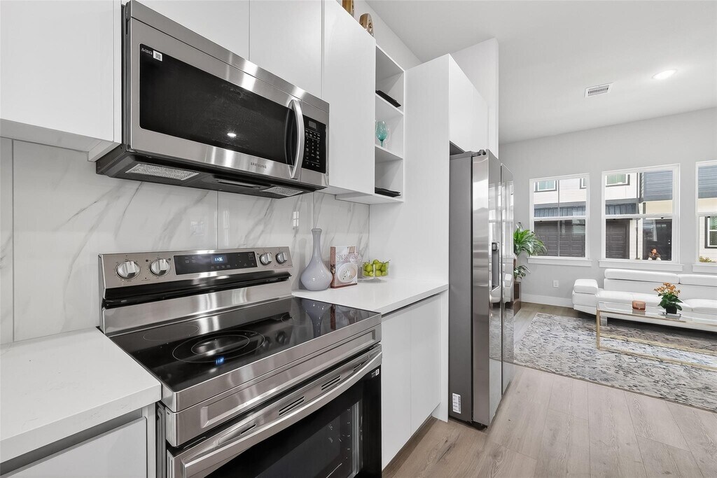 As the Model Home in the upscale,gated Metro Village community,built in 2025 by Luminous Homes,this brand-new two-story residence is ideally located just minutes from Bellaire Blvd and Little Saigon,with convenient access to Highway 6,Westpark Tollway,Beltway 8,and I-10,as well as nearby shopping and dining. Showcasing modern design and quality finishes,the home features 4 spacious bedrooms and 3 bathrooms,offering comfort and functionality for everyday living. The first floor presents an open-concept layout connecting the living area and kitchen—perfect for entertaining and daily activities. The sleek,contemporary kitchen includes quartz countertops,soft-close cabinetry,and ENERGY STAR–rated appliances for both style and efficiency. All bedrooms are thoughtfully situated on the second floor,creating a private retreat. This is a rare opportunity to own the model home in a prime,highly desirable location. The home is fully staged and available for lease unfurnished MLS# 73324944