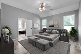 WOW! Now is your chance to own a spacious 4 bedroom,2.5 bathroom home built by Chesmar Homes in the highly sought after neighborhood of Hunters Creek in Bayton TX! Upon entering the home you will notice double height ceilings and an open modern floor plan lined with many features and upgrades. Some of the homes features include hard flooring in main living spaces,a chefs kitchen with large island,wrap around granite counter tops,extensive custom cabinetry and stainless steel appliances,a large dinning room (that can double as a in home study),oversized living room open to the second level,a massive game room/flex space and more! The primary bedroom is a must see and attached to a tranquil ensuite featuring a soaking tub,walk in shower,dual sinks and walk in closet. This home sits on a large lot overlooked by a covered patio/deck and backs up to a green space (no rear neighbors!) With many more features to list this home will not last long so call today for more information! MLS# 84277873