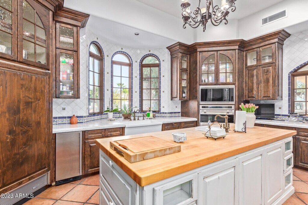 This FULLY-FURNISHED LUXURIOUS Home in PARADISE VALLEY,in the heart of Scottsdale,is a BEAUTIFULLY detailed,authentic Santa Barbara/Hacienda home designed for family living with SALTILLO tile throughout. A gated courtyard entrance leads into this GORGEOUS home that includes 6 STUNNING bedrooms en suite w/King and Queen size beds in this split floor plan. The bathrooms are detailed w/AMAZING tile work in the 7 bathrooms; and a CHARMING Guest House with a partial kitchen and laundry for those family/friend guests. The Chef's kitchen features WOLFE/SUB ZERO and opens to a casual dining area. Large butler's pantry and walk-in WINE CELLAR. The RESORT STYLE backyard has STUNNING mountain views from the pool area. A second to none backyard eating and cooking area with GRILL,PIZZA OVEN,SINK,FRIG,GRIDDLE and WOK RANGE with covered seating. Near Scottsdale Fashion Square,Camelback Mountain,Phoenician...