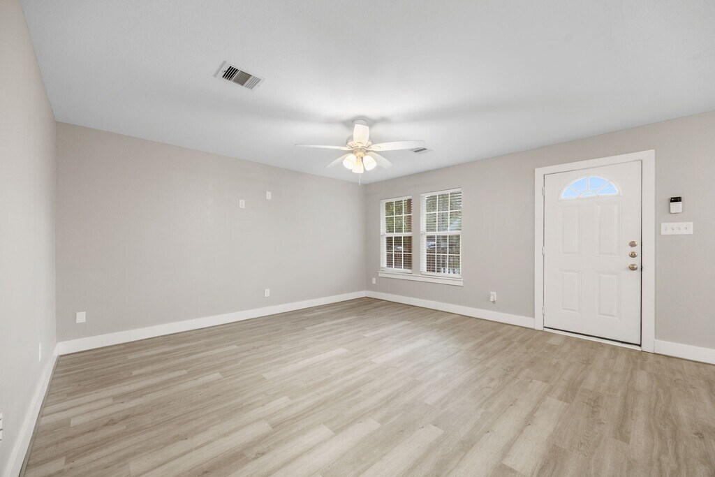 David BatagowerLovely 3 bed, 2 bath recent construction with large fenced backyard that has been freshly updated and is MOVE-IN READY! Recent paint and wood look flooring throughout (no carpet!). The open floorplan allows for easy entertaining or spending time with family. Nicely appointed kitchen that's open to living with all appliances included. The primary bedroom features an en-suite bathroom with walk-in closet. Both secondary bedrooms share a full guest bathroom and are comfortably sized (queen beds welcome). Bonus - mature trees throughout the backyard that provide plenty of shade, making this area easy for kids or pets to enjoy. Lastly, the front porch is perfectly sized for a couple of lounging chairs. Located less than 20 minutes from the Heights, you will enjoy a nice variety of grocery stores (and restaurants) nearby. Welcome home!