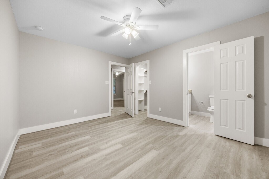 Lovely 3 bed,2 bath recent construction with large fenced backyard that has been freshly updated and is MOVE-IN READY! Recent paint and wood look flooring throughout (no carpet!). The open floorplan allows for easy entertaining or spending time with family. Nicely appointed kitchen that's open to living with all appliances included. The primary bedroom features an en-suite bathroom with walk-in closet. Both secondary bedrooms share a full guest bathroom and are comfortably sized (queen beds welcome). Bonus - mature trees throughout the backyard that provide plenty of shade,making this area easy for kids or pets to enjoy. Lastly,the front porch is perfectly sized for a couple of lounging chairs. Located less than 20 minutes from the Heights,you will enjoy a nice variety of grocery stores (and restaurants) nearby. Welcome home! MLS# 54451009