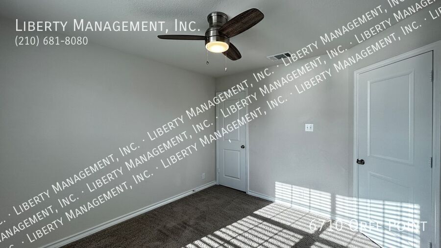 MOVE IN SPECIAL: 1 MONTH FREE* Welcome to your dream rental home near SeaWorld and Lackland Airforce Base! This stunning 4-bedroom, 2-bathroom single story home is located on a greenbelt in the Whisper Falls subdivision, a master planned community conveniently located off Highway 90. Experience the ultimate in resort-style living with amenities such as a pool, clubhouse, cabanas, playground, basketball court, and splash pads for kids. With major shopping and restaurants just a stone's throw away, you'll have everything you need right at your fingertips. The kitchen is an entertainer's delight, boasting ample cabinet space, granite counters, a huge island bar, stainless steel Whirlpool appliances, gas cooking, and LED canned recessed lights. The open floor plan features an oversized island bar overlooking the dining area and living room, making it perfect for hosting family and friends. Relax in the privacy of your spacious primary bedroom retreat, tucked away at the back of the house for ultimate tranquility. Enjoy a separate shower stall and a huge garden tub, a walk-in closet, and dual vanities. Every bedroom and the living room also has a ceiling fan for added comfort. Don't miss out on the chance to make this amazing rental home your own. *Owner will be adding a refrigerator with an approved applicant* Clubhouse Fishing Pier Pool Sports Court