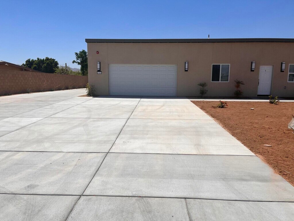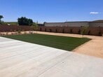 Built 2023. newer 4 bedroom 3 bath home with oversized garage (24x24) with an opening height of 7' 3',great form large vehicles. All appliances included with spacious laundry room with sink. Ductless cooling/heating system for air quality--Efficiently cool your entire home or one room at a time.. Block fenced yard with lush green artificial lawn and fruit trees for total privacy Water/trash/gardner included.