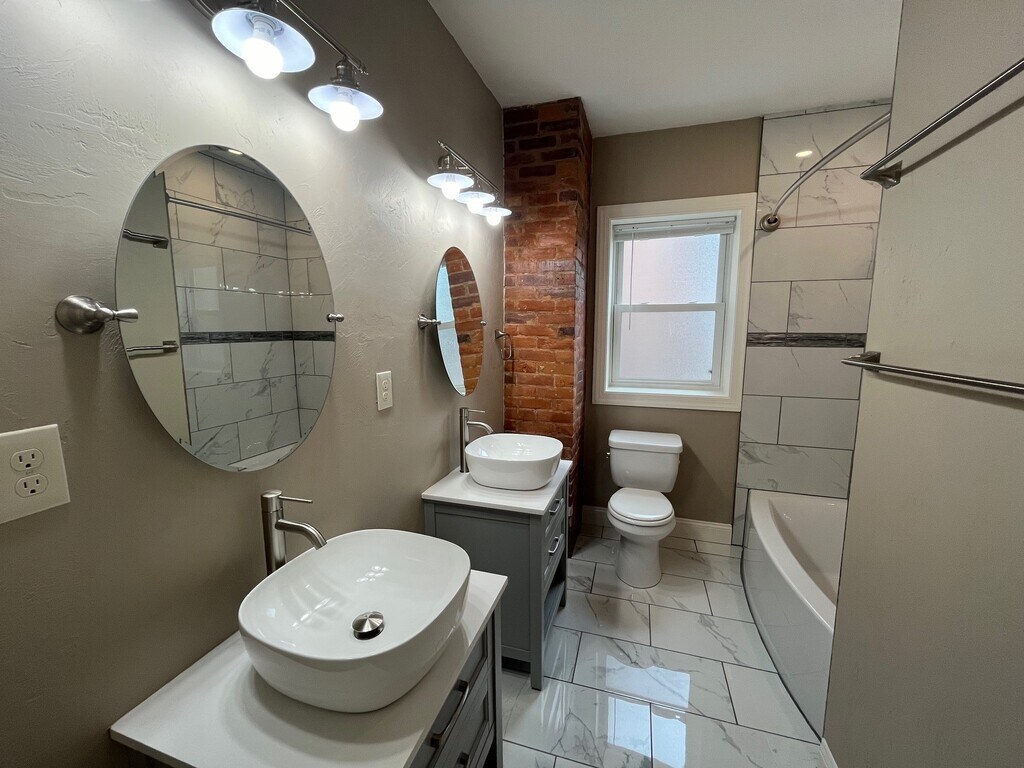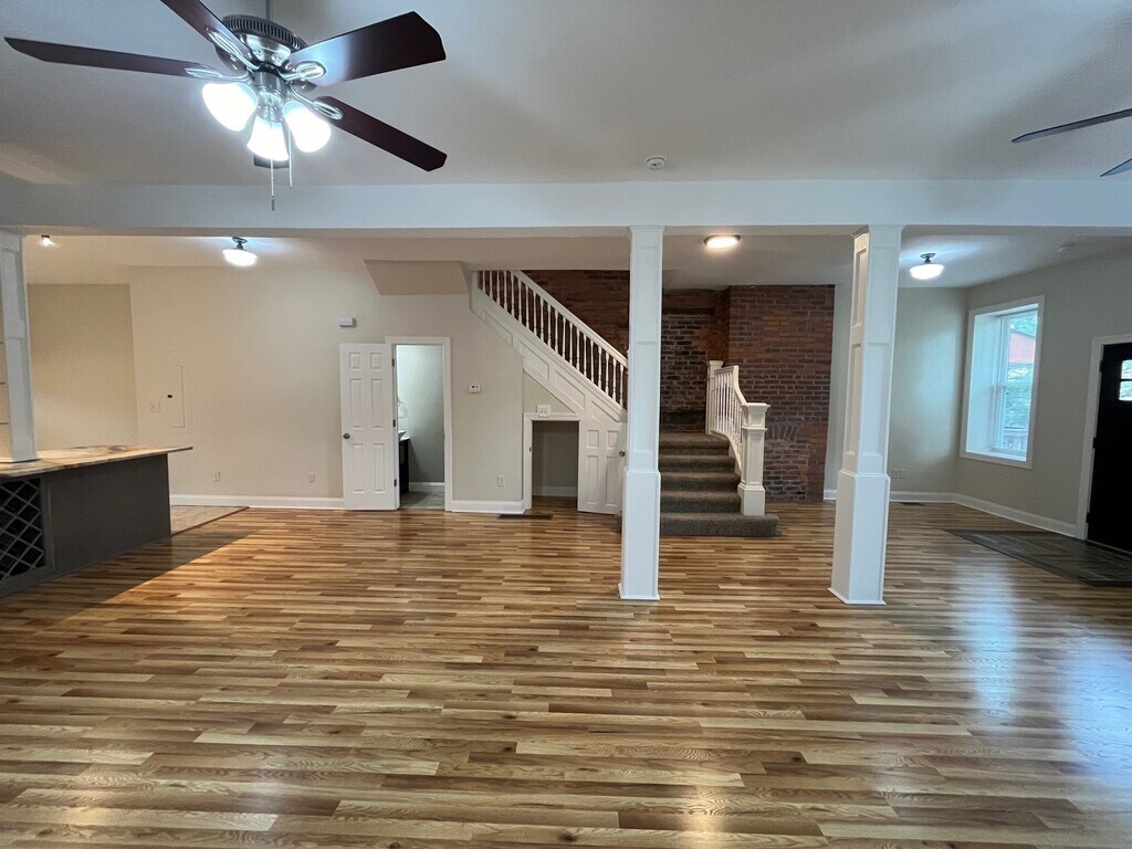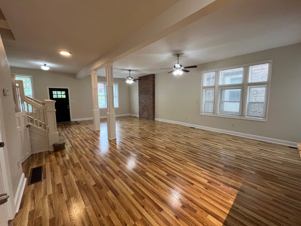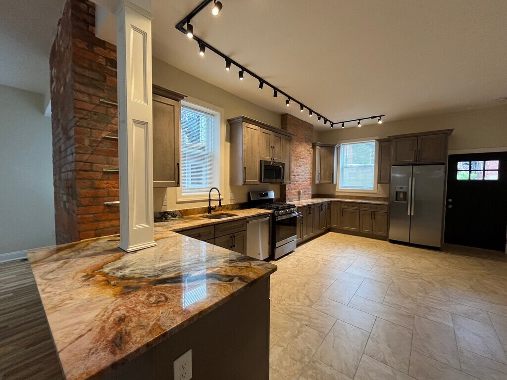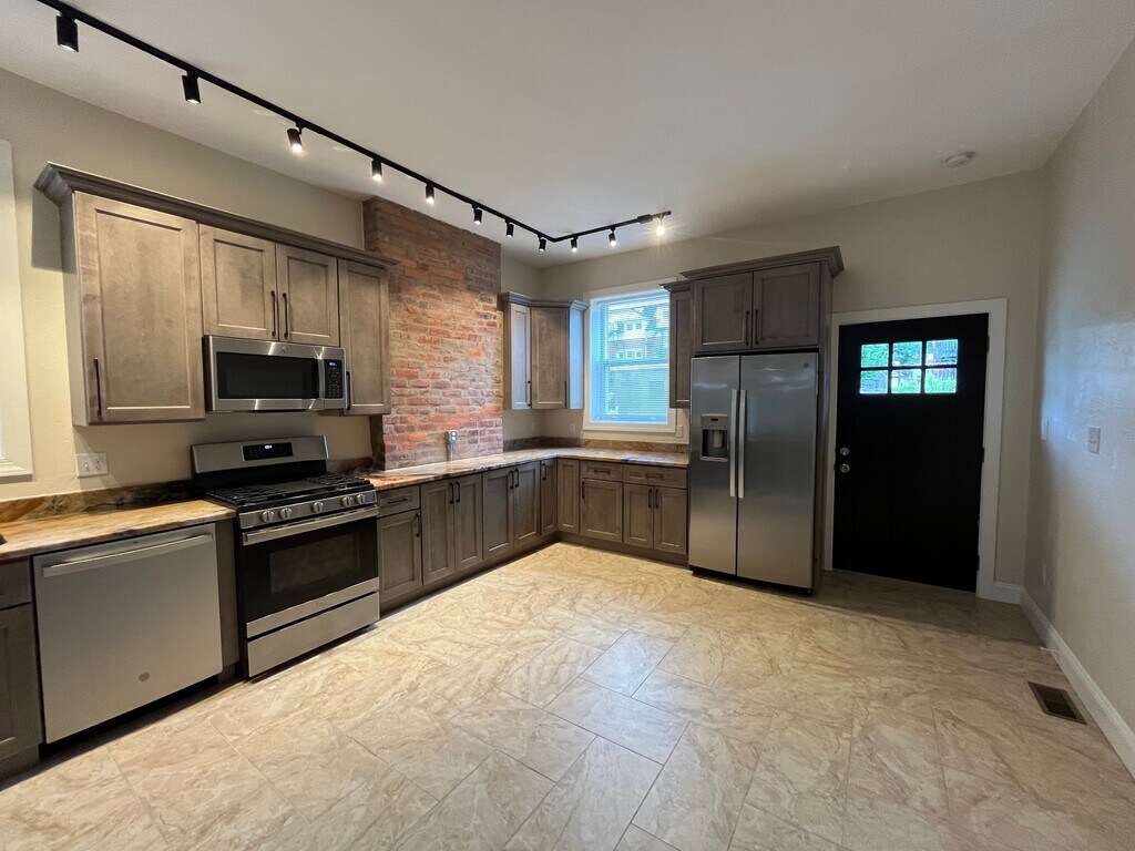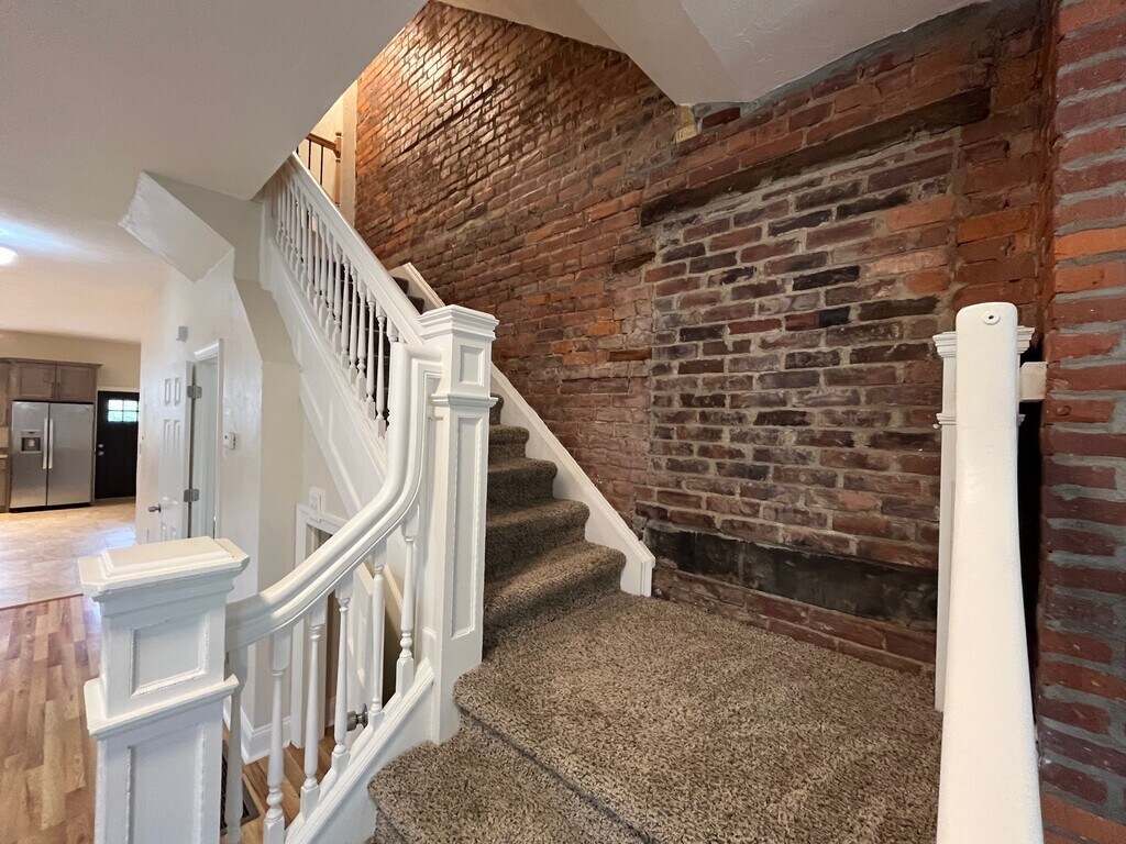 This brick 4 bedroom 3.5 bath home has been recently remodeled. It features an open floor plan on the first level with a large custom kitchen featuring custom cabinets and top tier granite. There are large windows and a new powder room. The second floor has 3 large bedrooms, 2 full baths, and a full size laundry. Two of the 3 bedrooms have walk in closets. The third floor has a bedroom, bathroom and an office. There are 2 separate HVAC systems for efficiency and comfort. There are both a private front porch, and a back patio. There is a fenced yard shared with the neighboring house we own. Behind the yard is a shared off street parking lot. One parking space per bedroom is permitted. Garages with EV charging or a carport may be available for additional rent. All our properties are pet friendly for friendly pets with a two-animal maximum. There are no breed or weight restrictions. We require proof of rabies vaccinations (and licenses for dogs), but we do not charge additional rent or fees for animals. Smoking is not permitted in any of our properties. Tenant pays water, gas, and electric. Landlord pays for trash removal and recycling.