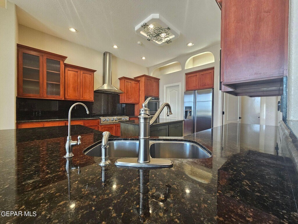 Great floor plan with ample space and amazing views of the Franklin Mountains. The whole house is tile and hardwood floors in the bedrooms for added luxury. The kitchen has granite countertops. Will include A stainless steel refrigerator,stainless steel cooktop,A built in double oven,microwave and dishwasher. (water softener in garage is not connected) The backyard is invited and great for relaxation.