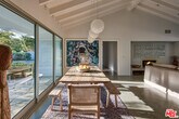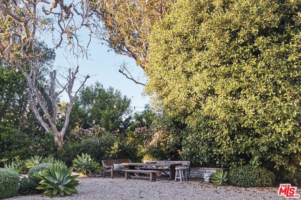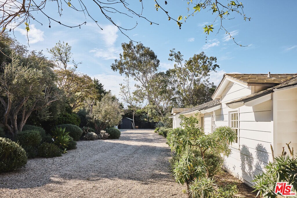 This sensational Point Dume house is set on more than an acre of gated and landscaped privacy. Complete with beach rights, it is a home created for comfortable indoor/outdoor living and sophisticated entertaining. The home is detailed with high wood-beamed ceilings, Fleetwood glass doors and cement floors. In addition to a beautiful living room, the home has a media room, family room with fireplace, a dining area, and a chef's kitchen equipped with a Viking stove and oversized Sub Zero refrigerator and freezer. Large 12-foot sliding doors open the house to the front and back yards. There are three bedrooms and four bathrooms, plus an office/bonus room, with a fireplace, that could be a fourth bedroom. The owner's suite has a fireplace, a wall of glass doors opening to the back patio, and a luxurious garden-view bath with a huge shower, tub, and double sinks. The exquisite grounds are tranquil and harmonious, with a pool and spa, dining area, fire pit, double barbecue island, multiple recreation and seating areas among beautiful trees and plantings, and a detached one bedroom guest house. The home is also equipped with modern updates such as Sonos speakers, Generac auxiliary power, NEST heating and cooling, and security entry. This exceptional property is just a short distance to Riviera 2 private beach access. Available July 1st, 2025. MLS# 26665167