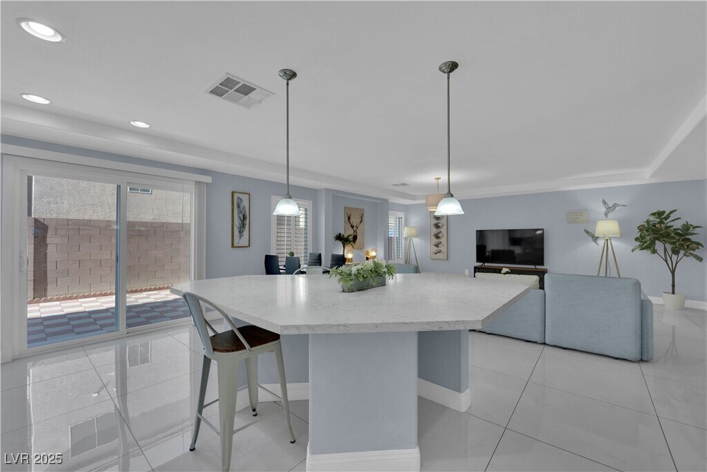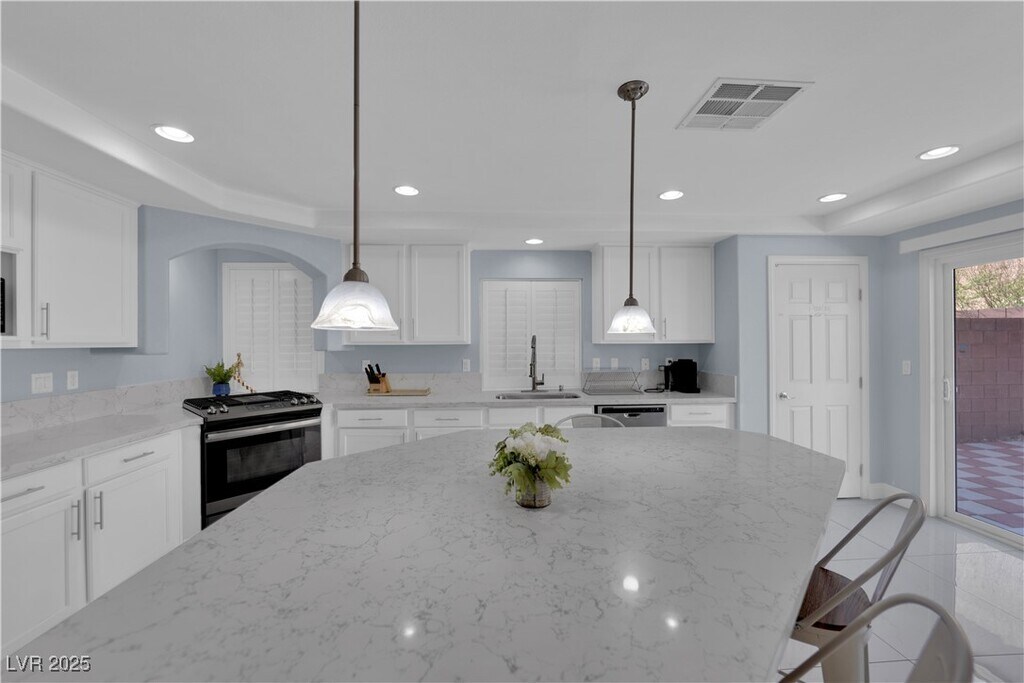 Discover this beautifully upgraded home with 4 bedrooms plus 2 flexible lofts perfect for office, playroom, theatre or guest suite. The primary bedroom boasts a fabulous walk-in closet. Enjoy an open floor plan with a spacious living room, modern kitchen featuring white quartz countertops, matching cabinets, and a walk-in pantry including refrigerator, stove, and dishwasher. Fresh paint throughout and fully renovated bathrooms showcase a clean, contemporary style with white porcelain tile flooring. The backyard is perfect for outdoor gatherings. Conveniently located in the heart of Southwest Las Vegas, near freeways 215, dining, and shopping, with easy access to the Strip and highways. A must-see! Tenant is responsible for $50/month for sewer & trash. Furniture is an option for lease to buy with an additional charge.