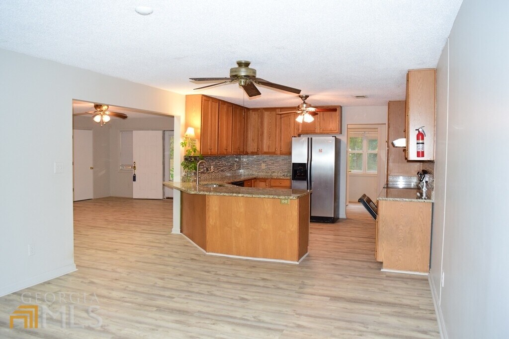 Location, Location, Location! Lovely ranch on approximately 5 ac. 3bed/2bath. LVP flooring through out, granite kitchen and bathroom counter tops, tiled back splash and sink, blinds, tubs and shower doors. Huge Master bedroom and 2 huge walk in closets with custom shelving. Newer roof. Level private lot. House sits back from the road. Huge sunroom, dining room and living room. Out buildings. Total electric. Good location. Minutes to I-85 and shopping centers, Newnan, Peachtree City, Senoia. Northgate high school district