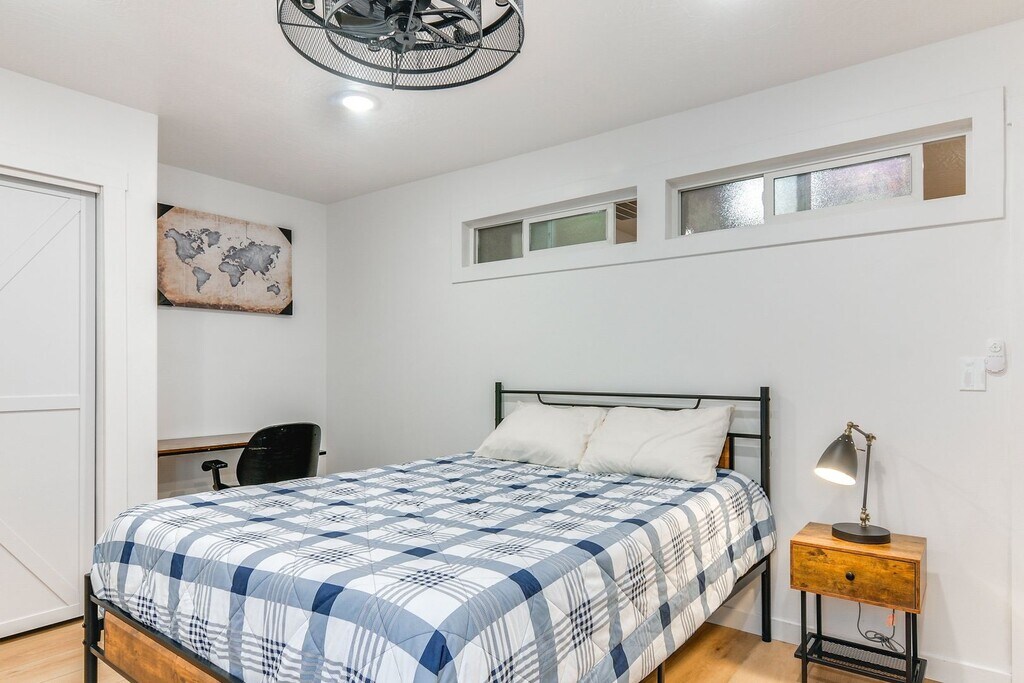 Experience Utah's untamed beauty when you stay at this ideally located 1-bedroom, 1-bath Cedar City vacation rental! Boasting a fully equipped kitchen, a modern interior with a Smart TV, and easy access to local attractions, this townhouse is ideal for those looking to explore the region while enjoying the comforts of home. Venture off to carve the slopes at Brian Head Resort or marvel at Cedar Breaks National Monument's majestic vistas. Even better, Zion National Park is just a day trip away! Central A/C & Heating | In-Unit Laundry | Proximity to National Parks & Monuments Bedroom: Queen Bed MAIN FEATURES: Smart TV, desk & chair, 2-person dining table, high chair, ceiling fans KITCHEN: Cooking basics, microwave, refrigerator, stove/oven, dishwasher, Keurig coffee maker, drip coffee maker, coffee & filters provided GENERAL: Free WiFi, linens & towels provided, in-unit washer/dryer ACCESSIBILITY: Step-free entry, interior stairs for full access, single-story townhome PARKING: Community lot (1 vehicle)