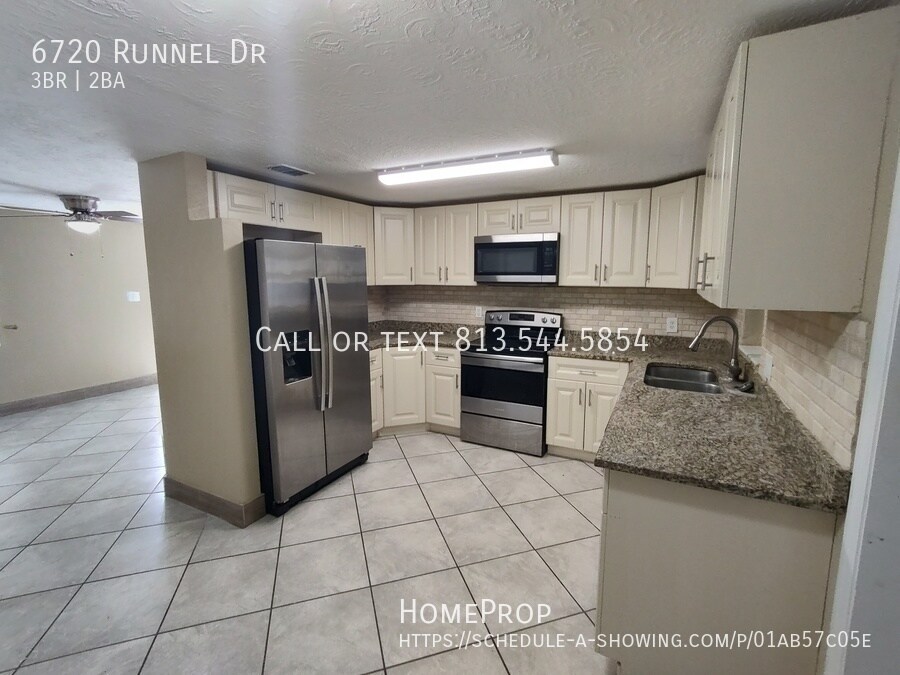 Welcome to your new home at 6720 Runnel Dr in New Port Richey, FLa delightful 3-bedroom, 2-bathroom residence boasting modern comforts. This home is move-in ready with a convenient 1-car garage and washer-dryer hookups. The interior shines with an open floor plan, ceiling fans, and a master bath. The kitchen is a dream, featuring granite countertops, updated tile floors, and stainless steel appliances, including a dishwasher and microwave. Central heat and air conditioning ensure your comfort throughout the year. Step outside to a spacious backyard or relax on the porch. Pets are negotiable, making this a welcoming space for your entire family. Local attractions include the tranquil Meadows Dog Park and the conveniences of Main Street New Port Richey. For shopping needs, you're minutes away from Southgate Shopping Center and Publix Super Market. With 4 parking spots and essential utilities included, this home is a gem waiting to be claimed! Funds Required at Move-In: First Month's Rent, Security Deposit and $99 Admin Fee Application Fees to HomeProp: $70 per adult, $5 Processing Fee Application Fees to HOA: NO, HOA Application is NOT Required. Assigned Covered Parking
