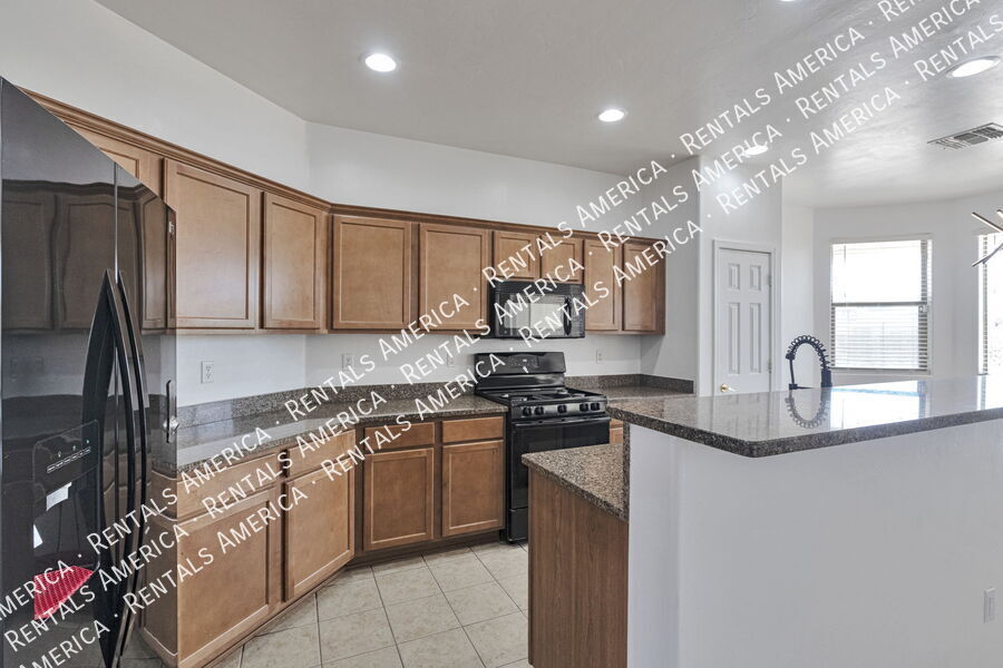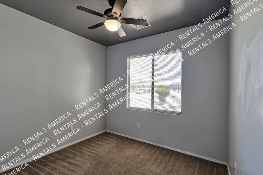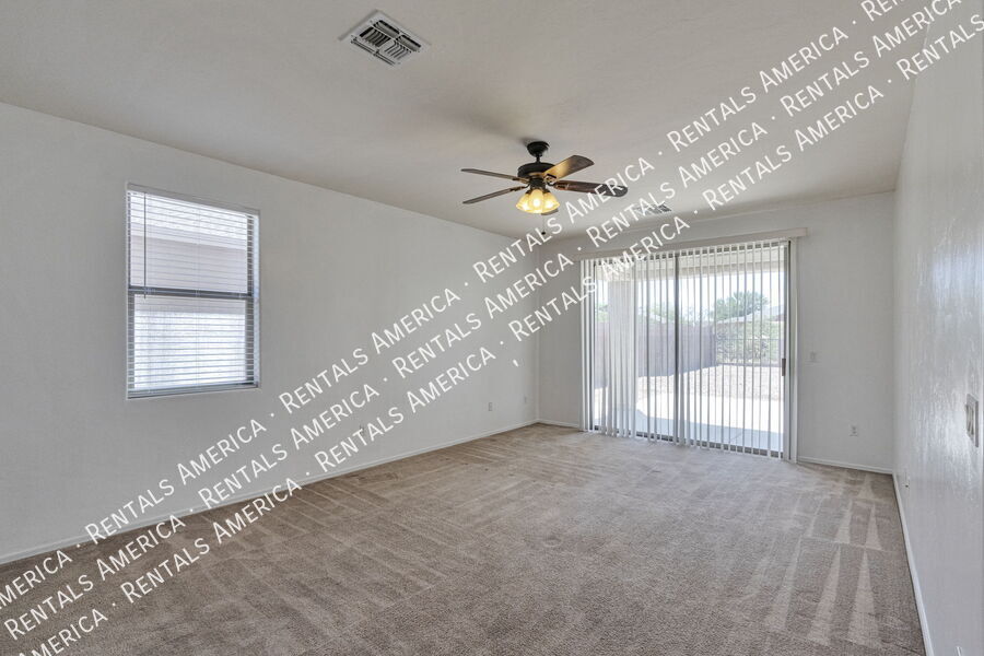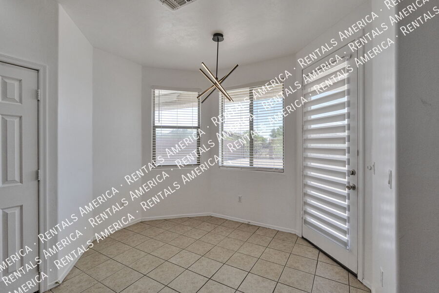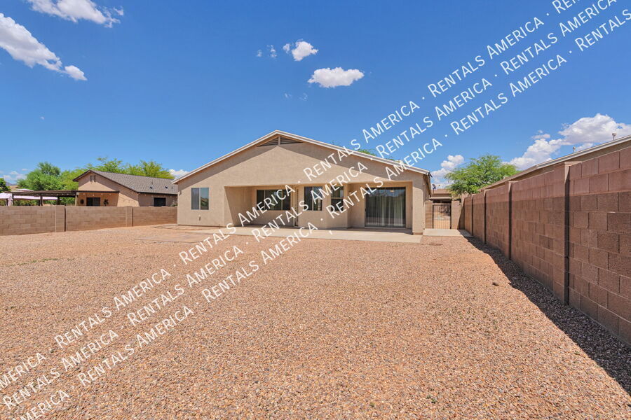 Step into comfort and style with this beautifully designed 4 bedroom, 2 bathroom home, perfect for families or anyone looking for extra space and modern touches. This home features an open-concept layout ideal for everyday living and entertaining with formal dining area plus a casual eat-in kitchen for versatile meal spaces. You will find ample cabinetry and counter space in a well-equipped kitchen! High ceilings and lots of windows throughout create a light and airy atmosphere. The home offers a large owners suite with direct access to the backyard patio and includes a private bath featuring double sinks, a soaking tub, and separate shower. The split bedroom floor plan offers added privacy with generously sized secondary bedrooms to accommodate guests, kids, or office needs. Enjoy the outdoors in a large backyard that backs up to a peaceful common areano rear neighbors! The extended covered patio spans the width of the home, offering the perfect place to unwind or host gatherings. This home offers the space and flexibility you are looking for with thoughtful design and a comfortable flow throughout. Dont miss your chance to make this spacious home yoursschedule a tour today! One-Time Admin Fee: $300. 1% Administrative Fee. Refundable Pet Deposit: $300/Pet, if applicable. Resident Benefits Package: $39/month. Helping Heroes Discount Available! Equal Housing Opportunity Cats Allowed Dogs Allowed Dryer Garage Pets Allowed Washer